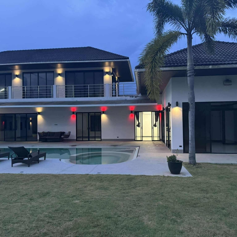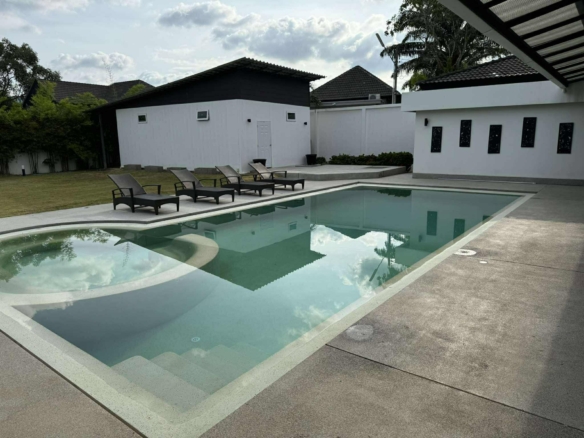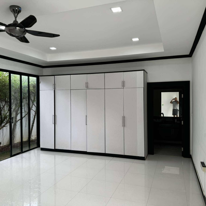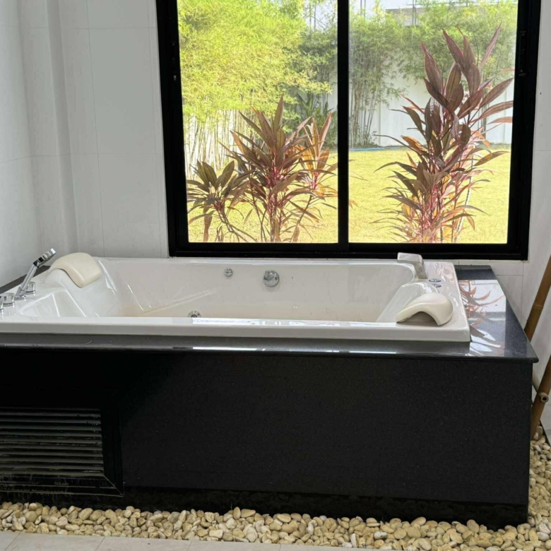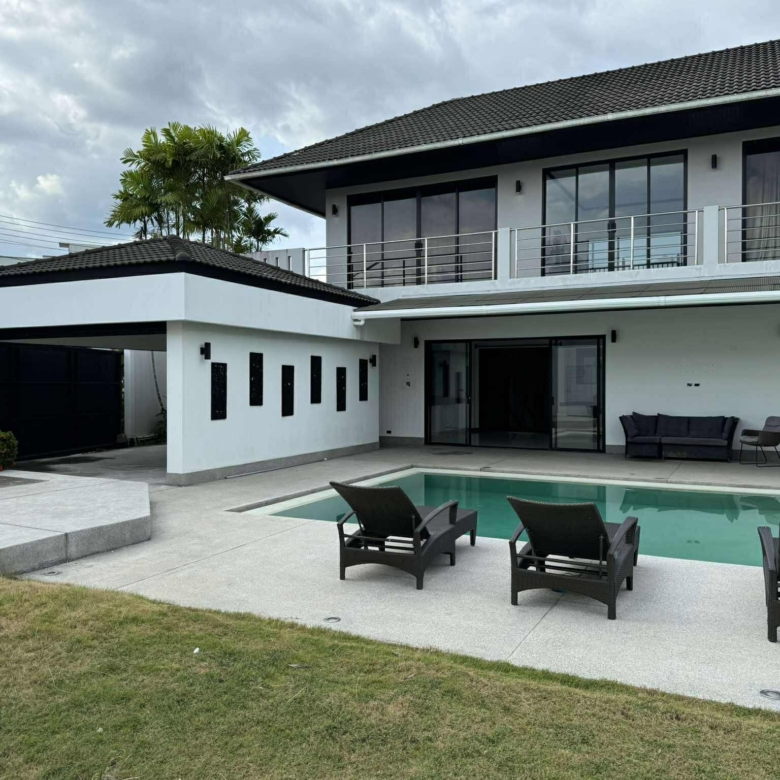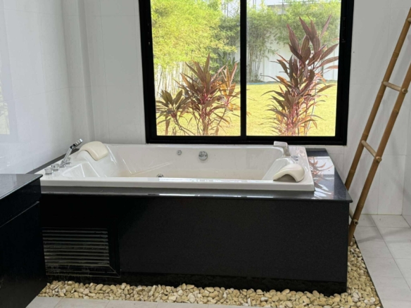 This 4-bedroom pool villa in Cherngtalay is nestled in a quiet residential neighborhood of Pasak, offering spacious luxury and modern comfort just minutes from Bangtao Beach, Boat Avenue, and Laguna. Built on a large 1,025 sqm land plot with a generous 600 sqm built-up area, this villa provides an ideal retreat for families or those seeking a tranquil yet connected lifestyle in Phuket. The home features clean architectural lines, high ceilings, and abundant natural light, enhancing the tropical ambiance and creating a seamless flow between indoor and outdoor living areas. The property comes unfurnished so the new owner can furnish and decorate the villa to his/her own taste. This villa is ideal as both a long-term family residence and profitable rental investment property. Key Features: 4 ensuite bedrooms with custom walk-in closets 7 bathrooms in total including guest facilities Large open-plan living and dining area with pool views Fully equipped Western kitchen with breakfast bar Private swimming pool with sun deck and garden view Heated jacuzzi for year-round enjoyment Covered outdoor terrace for lounging or al fresco dining Separate maid’s room and full laundry/storage area Covered private parking Landscaped tropical garden and mature greenery Built-in smart lighting and home security system Located in a secure, private residential community The layout has been designed for practical indoor-outdoor living, with each bedroom having direct access to the pool or garden. Large glass doors open from the living and dining areas onto the covered terrace, ideal for relaxing or entertaining outdoors. The fully fitted kitchen includes ample storage, high-end appliances, and a layout that suits both everyday living and occasional hosting. The master suite boasts direct pool access and a luxurious ensuite bathroom with dual vanities. Ownership & Price Ownership: Thai Freehold or Company Freehold (Thai company included if desired) Asking Price: THB 24,500,000 No common area fees This Pasak villa for sale offers excellent value for buyers seeking a high-quality villa in a well-established neighborhood. The inclusion of a Thai company for freehold ownership offers added flexibility for foreign buyers. Location Highlights – Pasak, Cherngtalay This pool villa near Bangtao Beach is ideally positioned for lifestyle and convenience: 5 minutes to Boat Avenue & Porto de Phuket 7 minutes to Bangtao Beach 10 minutes to Laguna Golf Course Close to international schools, spas, and beach clubs 30–35 minutes to Phuket International Airport Pasak is known for its peaceful surroundings while remaining close to Phuket’s most desirable lifestyle attractions. Its family-friendly environment, proximity to nature, and growing infrastructure make it one of the island’s top residential zones. Why This Phuket Villa With Garden Stands Out Ideal for full-time living or rental investment Fully furnished and move-in ready No common area fees – complete property independence Spacious layout and high-quality finishes throughout Heated jacuzzi and tropical landscaped gardens Premium residential location with strong growth potential This luxury villa in Pasak offers a rare combination of modern living, privacy, and convenience in a sought-after area of Phuket. Its smart layout and elegant design make it an outstanding home or investment for discerning buyers. Contact ThaiEstate today to arrange a private viewing or to request more information about this 4-bedroom pool villa in Cherngtalay.