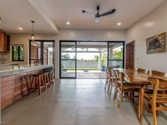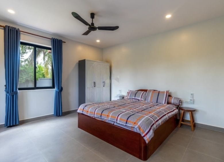 This gorgeous four-bedroom villa is now available for sale, offering the rare opportunity to secure a private home in one of Siem Reap’s most sought-after neighborhoods among expats. Set on a 907 sqm. land area, the property features a lush lawn, paved driveway, covered parking, and your very own swimming pool—perfect for family living or entertaining.