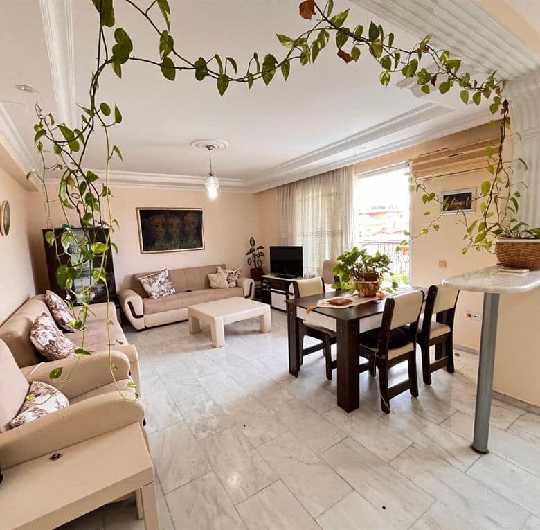 If your ideal home includes open, light-filled rooms, a separate kitchen, and sweeping views of both the sea and Alanya Castle, this 150 m² 4 room apartment in Küçükhasbahçe is worth your attention. Located just 2.1 km from the Mediterranean coastline, it offers a balance between city proximity and the calm of a residential hillside setting.