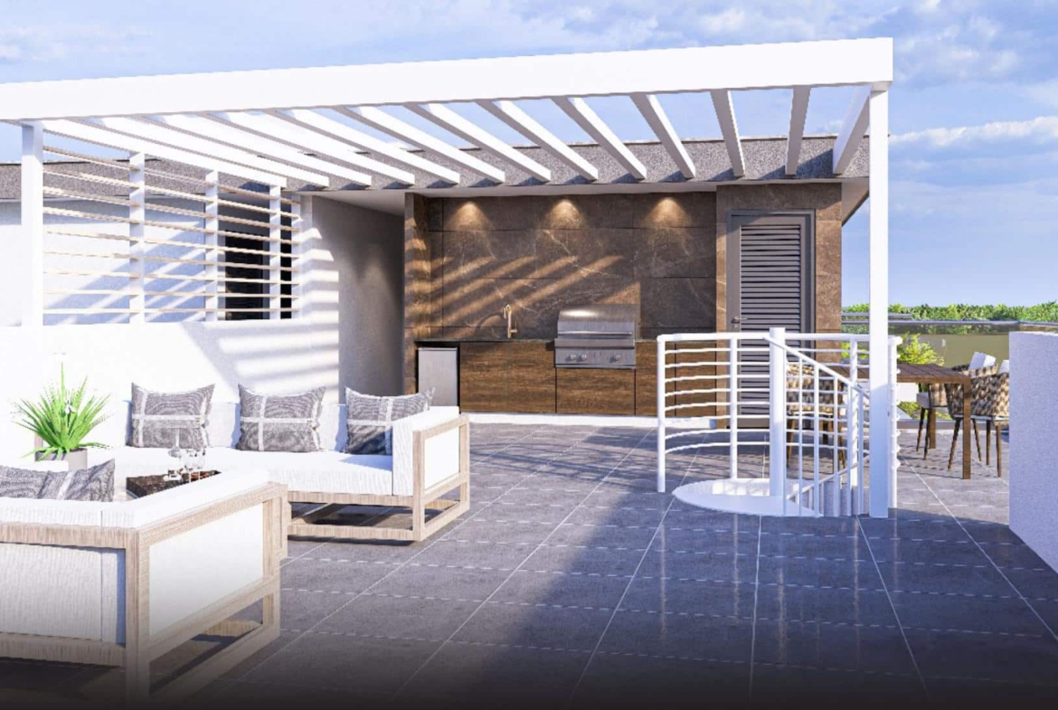 This stunning penthouse is located in the serene village of Kiti, just 10 minutes from Larnaca International Airport and 15 minutes from the town center. Combining tranquility with convenience, the residence is close to all essential amenities including supermarkets, schools, and offers easy access to highways. This exclusive penthouse offers the added luxury of a private, expansive roof garden with breathtaking views of the prestigious neighborhood. High quality finishes, such as Italian ceramic and elegant glass balconies, enhance the contemporary design. Designed for modern comfort and elegance, this penthouse provides privacy, outdoor living space, and a quiet family-oriented environment—perfect for those seeking a luxurious home in the sun.