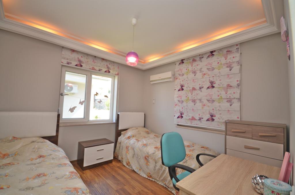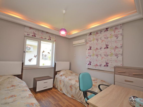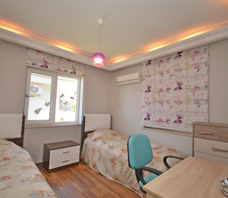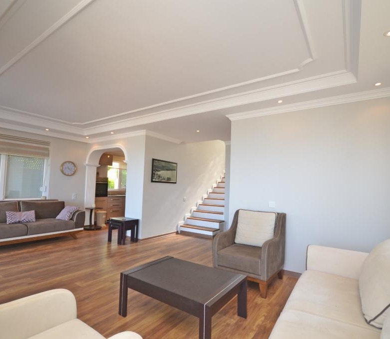 Step into a world of elegance and comfort with this exquisite villa located in a prestigious community.This 3+1 villa, covering 250 square meters, offers a harmonious combination of style and functionality, ideal for those seeking a sophisticated lifestyle.- Spacious and sunny design: take advantage of the south-facing design, ensuring that your home is flooded with natural light throughout the day, creating a warm and cozy atmosphere.- Fully furnished villa, tastefully furnished and carefully designed to meet all your needs.- In the complex, you can enjoy a communal swimming pool, which will be the perfect place to relax and entertain.- Private covered parking: enjoy the convenience and security of a dedicated covered parking, which guarantees peace of mind for you and your vehicles.- 24-hour security: feel safe thanks to the 24-hour security service, which will allow you to enjoy your home and surroundings with complete peace of mind.Don’t miss out on the opportunity to own a piece of this exceptional life experience. Act now to secure your dream villa and enjoy life in comfort and prestige. Take advantage of the perfect combination of elegance and convenience and make this villa your permanent home today.