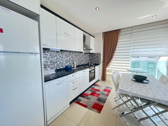 Imagine waking up to the serene sound of waves crashing against the shore, as the sun rises over the horizon, greeting you warmly through your windows. This is the life that awaits you in the project, located in the picturesque area of Kestel. This exquisite 2+1 apartment, offering 110 square meters of luxurious living space, is designed for those who appreciate the finer things in life.