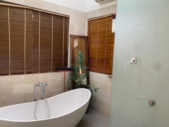 This 5-bedroom, 5-bathroom villa perfectly matches Sanur’s appeal. Set on a generous 500 sqm of land with approximately 350 sqm of living space, the two-story home embodies contemporary style with a touch of warmth that transforms a house into a home. Built in 2021, the villa’s layout features a Western-standard kitchen, a spacious living room, and a dedicated dining area, all designed for effortless flow and comfort. Each bathroom is fitted with premium amenities like tubs and rain showers, ensuring modern functionality at every turn.