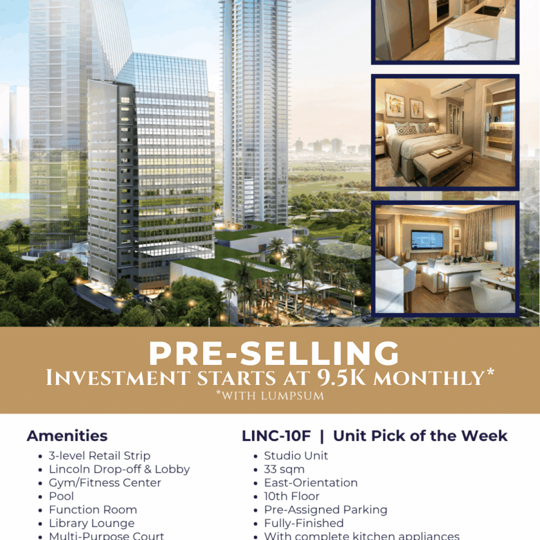 STUDIO (33SQM) at Lincoln at the IPI Center (Starts at 9K/month)