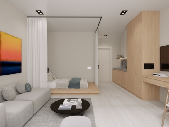 The project offers 25 boutique studios nestled in the heart of Limassol’s historical center — a vibrant hub of rich cultural heritage, filled with shops and restaurants that appeal to both tourists and young professionals. Thanks to the Limassol Municipality’s proactive efforts to restore and invest in metropolitan development initiatives, the area is continuously evolving, offering stable and promising returns for investors. The fourth-floor roof garden offers all the facilities you need for relaxation during your stay, including an overflow swimming pool with a sunbathing area, a barbecue, and an outdoor cinema wall. For fitness enthusiasts, a fully equipped gym is available all year round.