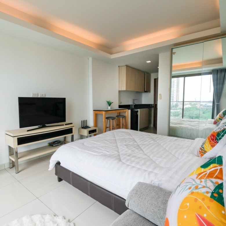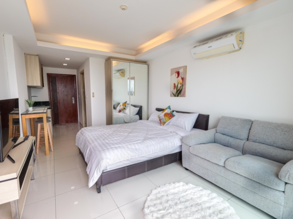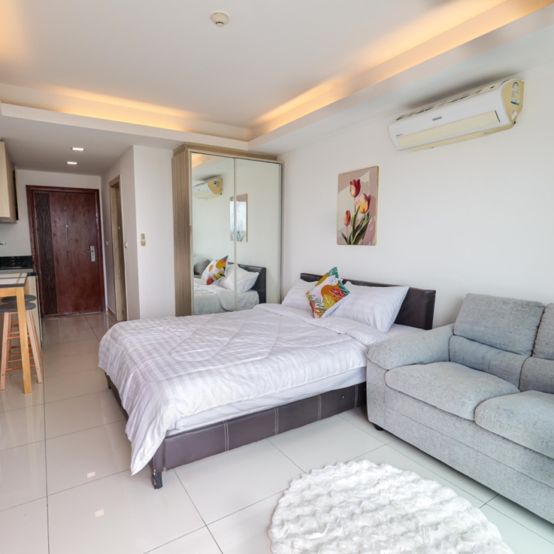 This newly renovated studio is located on the 8th floor of Building C at Laguna Beach Resort 1, Jomtien. The unit offers 26 sqm of living space with sea and city views. It comes under the foreign ownership quota, making it suitable for international buyers.