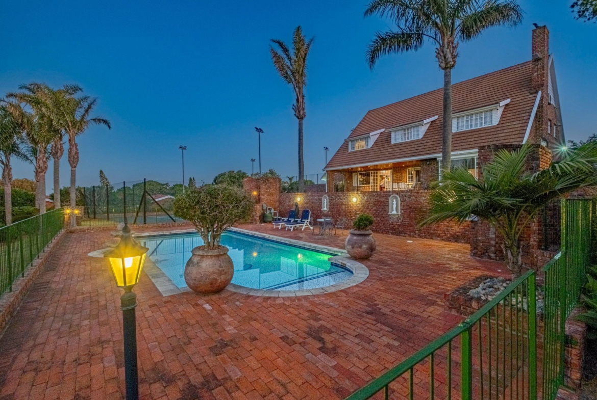 Outside; Flood lit tennis court linked to Eskom and to 12.5 kilowatt Honda generator which severs all electrical requirements when load shedding ,very large chip tile swimming pool with chlorinator, pool and tennis court on same level , large open braai area linked to pool area ,large veranda outside bar and formal lounge exists, Large immaculate garden under full irrigation from two stations, plot size 2800 square meters plus minus 15 large palm trees ,two sets of steps leading to bottom of garden with two benches ,plenty of wild life re birds , security lights around house and the whole property security camera covering outside of house ,large flood light on tennis court, alarm system and movement light detectors on two corners of house ,and the most important factor is the stunning view from this property over most of city and distant mountains ,completely private .Sold with all present curtains and various other house hold items ,owners retiring to smaller property pension age 41 years in this grand old lady.