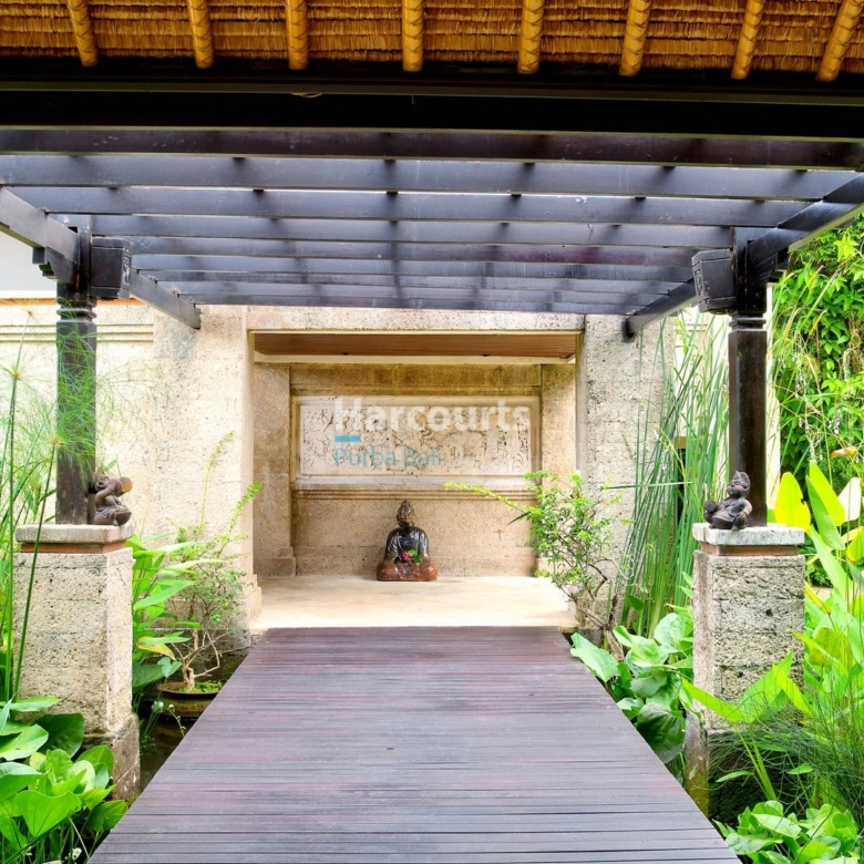 As you enter the estate, you’re greeted by lush tropical gardens and a sense of tranquillity that permeates the air. The villa itself, boasting an impressive build of 789 square meters, exudes timeless charm with its traditional Balinese architecture.