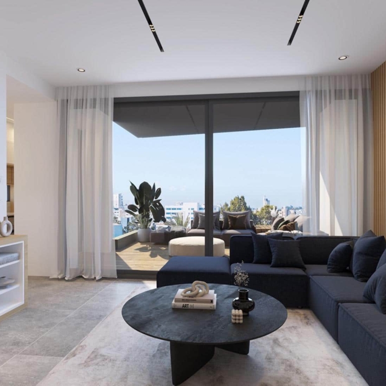 A luxury building, symbol of convenience and charm and modern stunning design. Located in the heart of the city, in Lycabitus area, minutes from Makarios Avenue and the city centre. The sleek building consists of five floors with amazing apartments including studios, 1 bed and 2 bed flats as well as a whole floor 3 bed penthouse on the 5th floor. This spacious flat has its own photovoltaic panels, provision for electric car charger, safety bar in the parking area and 2 allocated parking spaces for the particular flat.