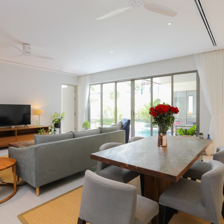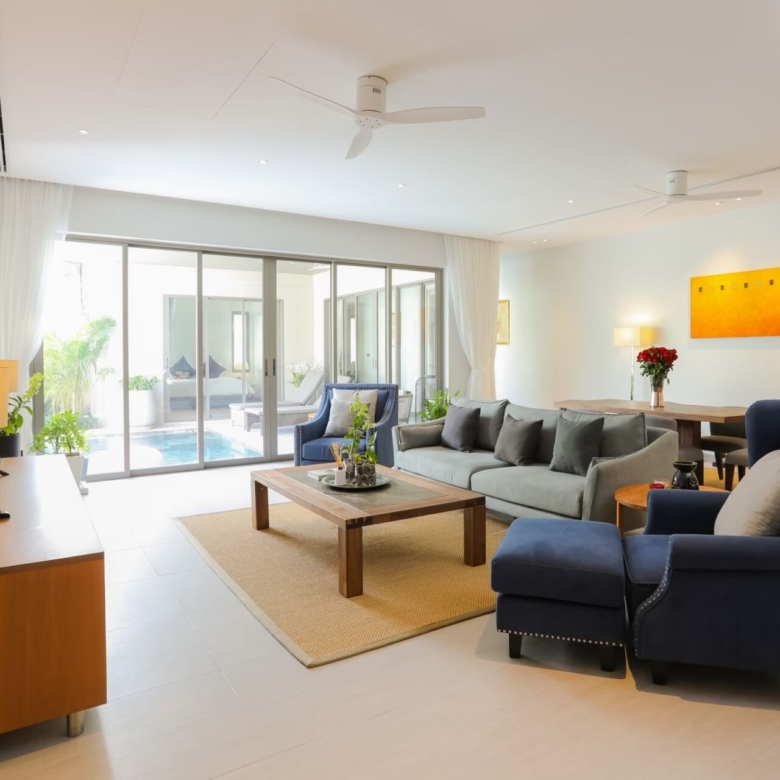 This elegant 3-bedroom, 4-bathroom standalone pool villa offers a rare opportunity to own a well-crafted home just 5 minutes from Boat Avenue, one of Phuket’s most vibrant lifestyle destinations. Designed and built by the owner, the villa showcases attention to detail, energy efficiency, and seamless indoor-outdoor living. Set on a 404 sqm land plot, with freehold ownership, this single-storey home features a private swimming pool, solar rooftop, and a beautifully landscaped garden – all without any common area fees or sinking fund obligations. Property Features: Price: THB 20,000,000 (Fully Furnished) Land Size: 404 sqm Built-up Area: 328 sqm Bedrooms: 3 ensuite bedrooms + maid’s quarters Bathrooms: 4 (including maid’s bathroom and guest toilet) Ownership: Freehold (Chanote Title) Private Pool: 6 x 3 meters – perfect for relaxation or entertaining No Common Area Fees or Sinking Fund – total ownership freedom 10 kWh Solar Rooftop System – eco-friendly and cost-saving Beautiful Private Garden – ideal for outdoor living Modern Kitchen + Separate Thai Kitchen – well-equipped for any occasion Open-Plan Living and Dining Area – comfortable, stylish, and spacious Large Master Suite – with walk-in closet and luxury ensuite bathroom Laundry Room & Storage Area Covered Parking for 1 Car Built-in Well + Water Filtration System – reliable water source High-Quality CCTV & Electric Gate – added security and peace of mind Location: Set in the heart of Bang Tao, this villa enjoys one of Phuket’s most convenient locations. Just 5 minutes from Boat Avenue, and a short drive to Bang Tao Beach, Porto de Phuket, Laguna Golf Course, and international schools. Enjoy easy access to dining, supermarkets, entertainment, and healthcare. Contact ThaiEstate today to schedule your private viewing and learn more about this exclusive standalone villa – where design, comfort, and location come together perfectly.