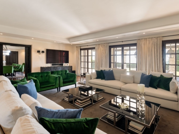 This exquisite 7-bedroom villa is located in the prestigious Cascada de Camoján area on Marbella’s renowned Golden Mile. Nestled in a prime mountainside setting, the property offers breathtaking panoramic views of the sea, lush gardens, and the surrounding mountains. Known for its peaceful ambiance, top-notch security, and close proximity to first-class amenities, this coveted neighborhood is one of Marbella’s most sought-after locations.