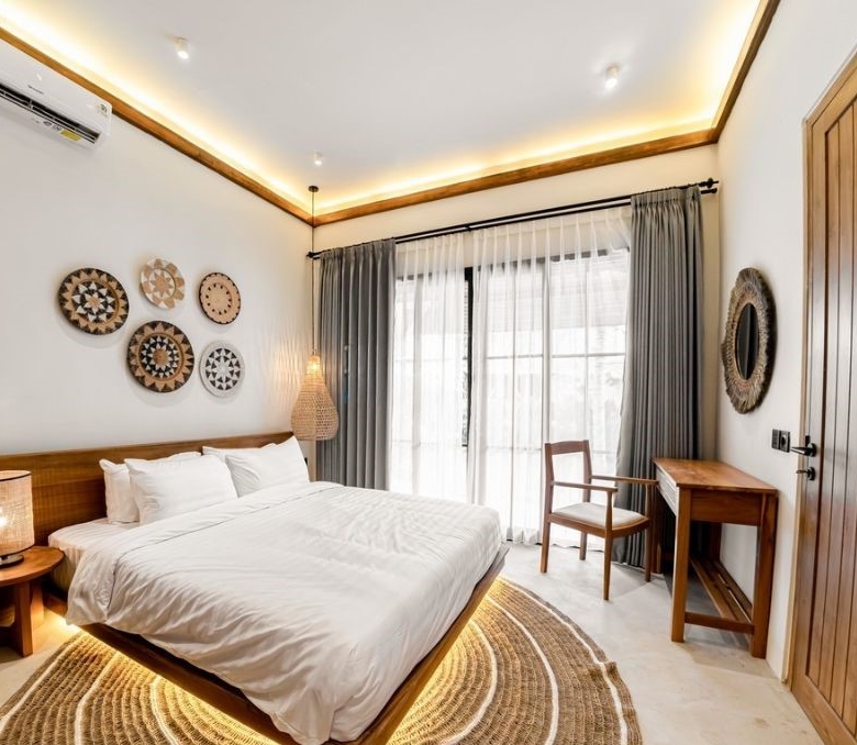 This modern and stylish 1 bedroom apartment is located in the lovely village of Petulu, Ubud, close to facilities such as restaurants, cafes, shops and supermarkets. Offered on a LEASEHOLD of 25 years, the studio apartment is part of a 6-unit apartment complex that will include a main swimming pool and parking. The size of the apartment is 32.7 sqm and comes beautifully fully furnished offering a trendy mezzanine style design – the first floor is where you will find the living area with a fully-fitted kitchen. The bedroom upstairs is spacious and includes a work space and wardrobe. The bathroom is luxurious with beautiful decorative wall tiles.