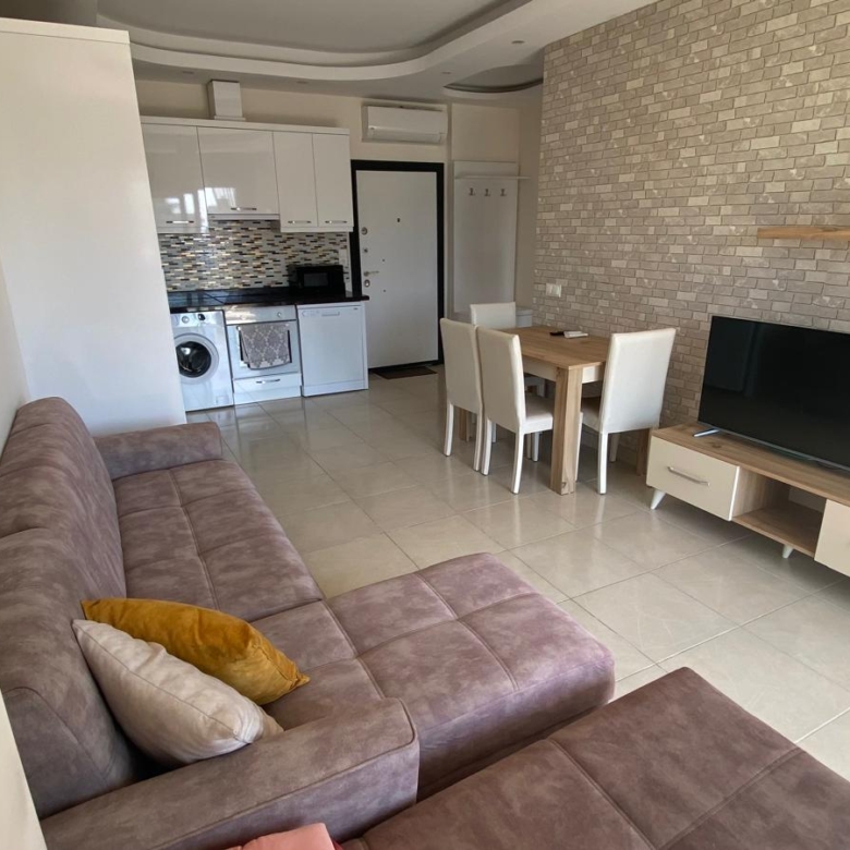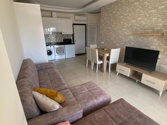 Modern apartment for sale in Mahmutlar – This furnished 1+1 apartment in Mahmutlar is located in the modern Yekta In Plus+ Residence. With 60m² of living space, the apartment is situated on the 5th floor and faces south, offering plenty of natural light. The property is just 400 meters from the beach, making it an excellent choice for both living and investment. The apartment includes a spacious living room with an open-plan kitchen, a bathroom, and a balcony for relaxing outdoor moments.