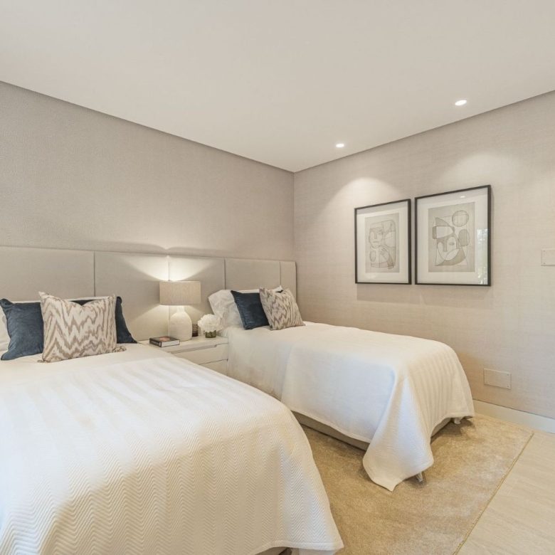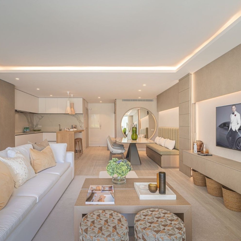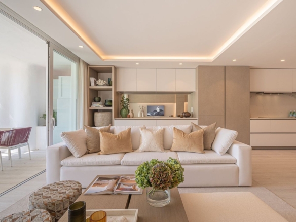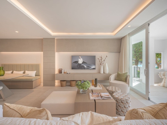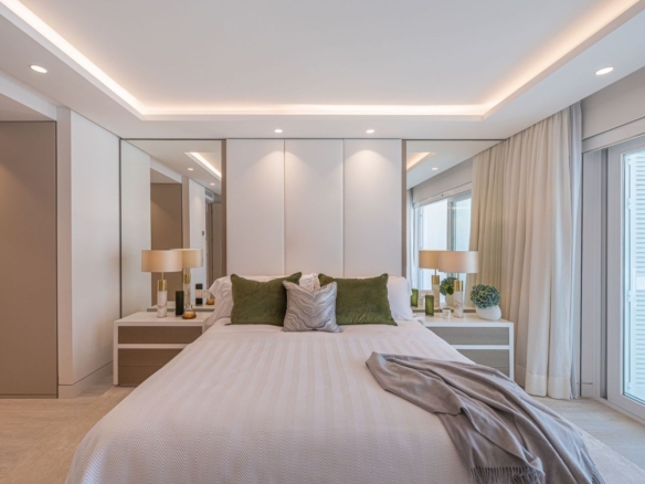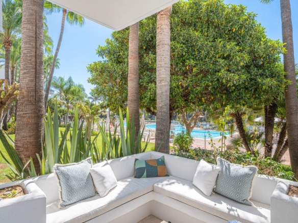 A stylish, newly renovated ground floor three bedroom apartment, set in the heart of the luxurious Puente Romano Resort. The property encompasses opulence and comfort with idyllic surroundings and views. The tropical gardens back directly onto the boardwalk that meets the golden sands and the Mediterranean Sea, at a mere 100m from the beach.