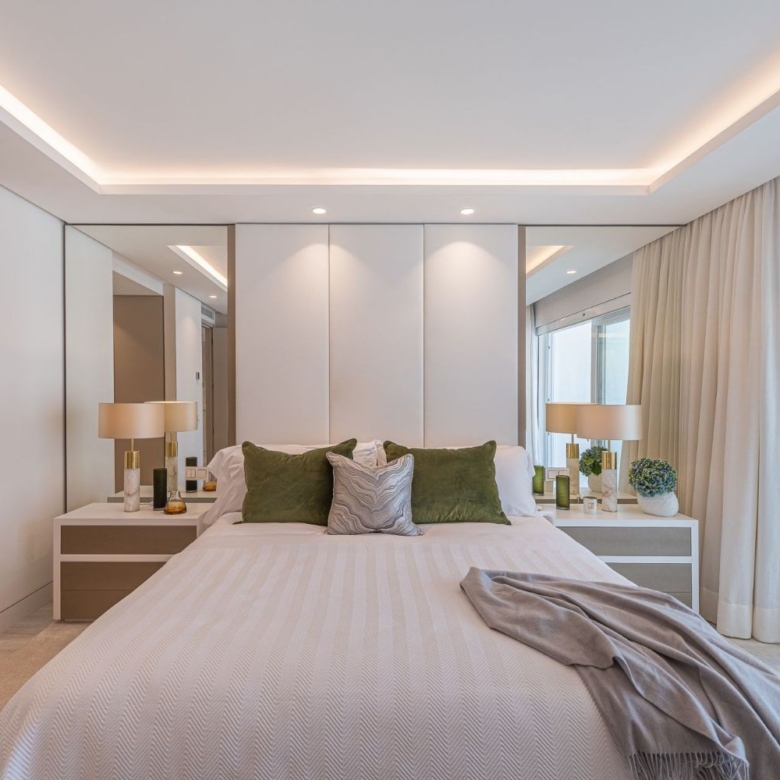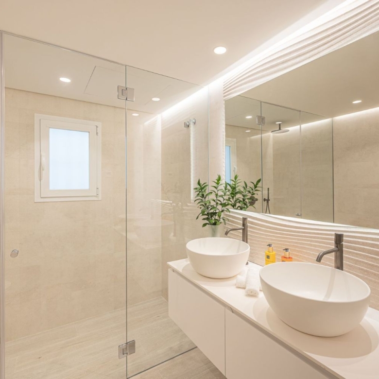 The terrace with down lighters creates the perfect entertaining area. With the iconic La Concha mountain as a backdrop, the Mediterranean only footsteps away, this is truly the idyllic setting!