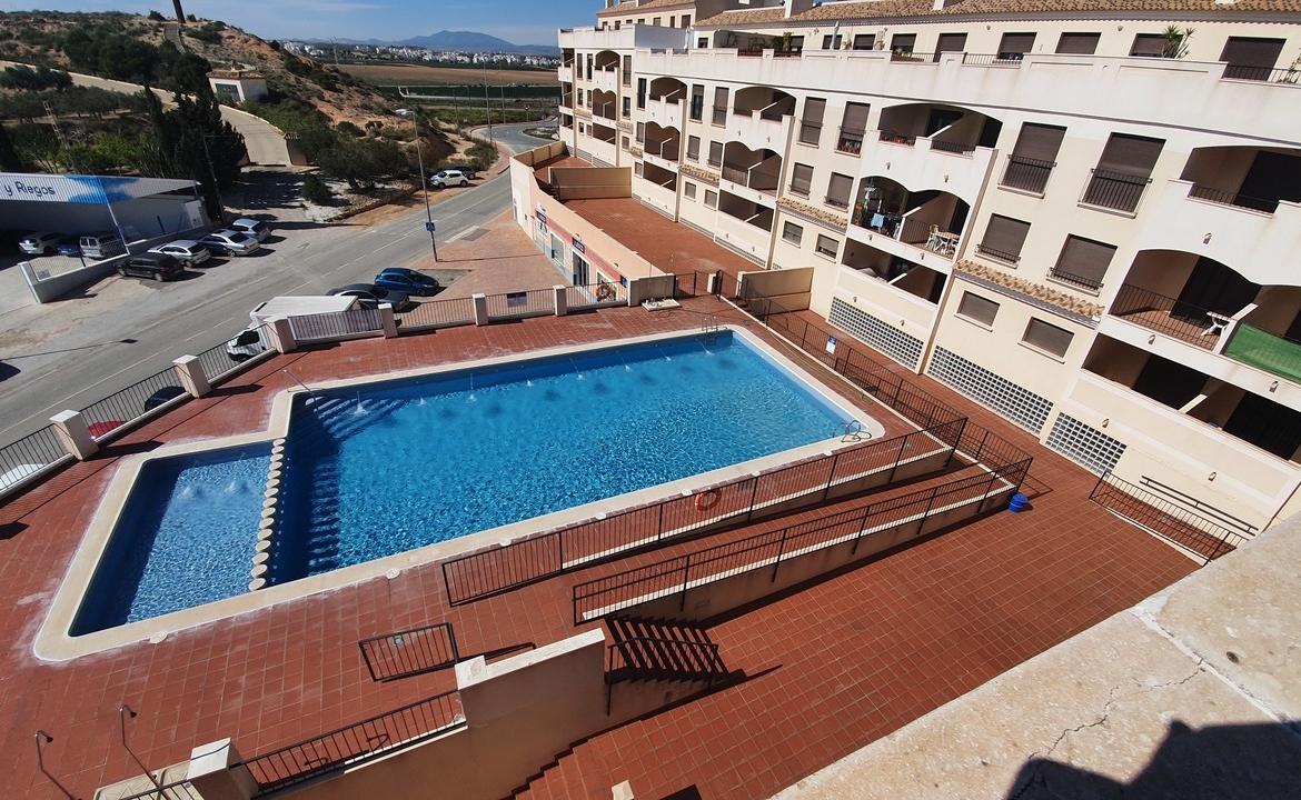 Open plan kitchen, nice size lounge and a massive terrace, south facing and views over communal pool, mountain views, and distance views to Hacienda Riquelme Golf Resort.