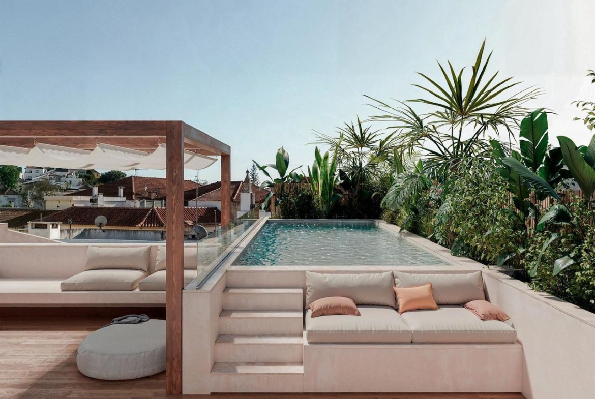 Imagine stepping into a private oasis with rooftop swimming pool and terrace, where lush courtyards and sun-drenched terraces create a tranquil ambiance amidst the bustling town.