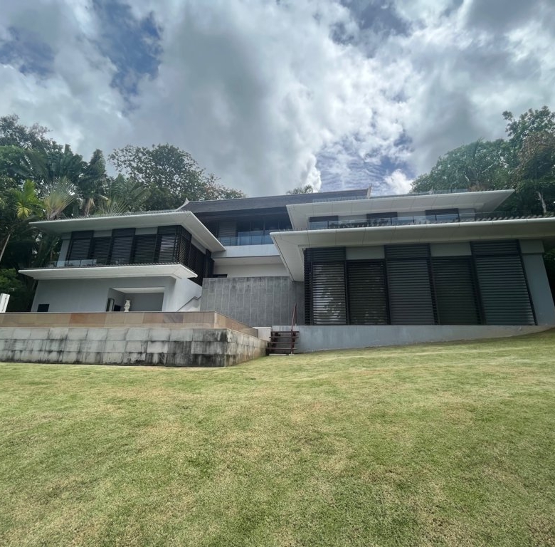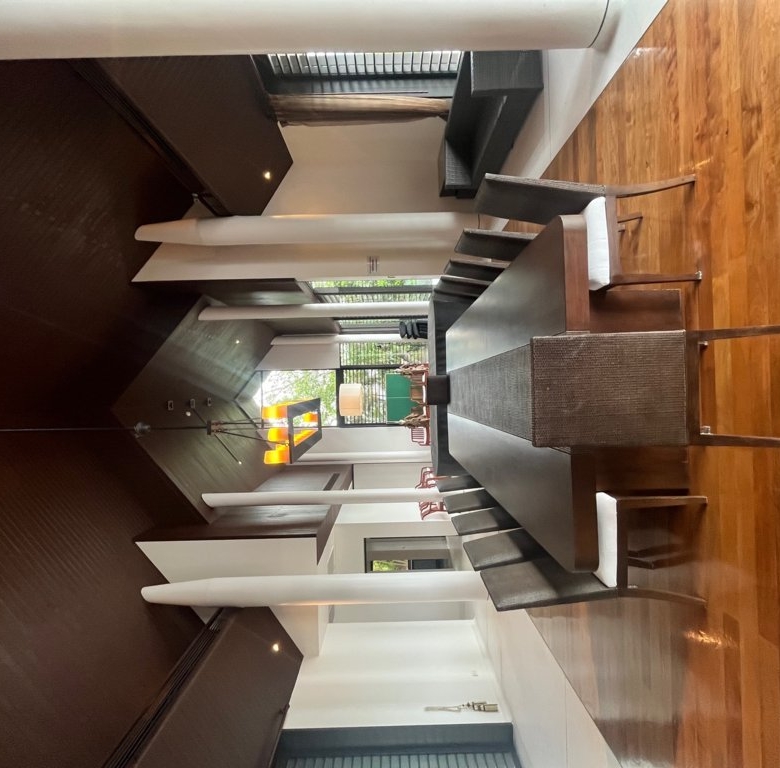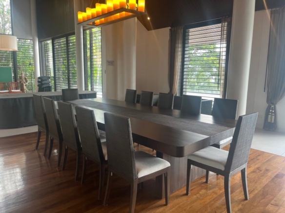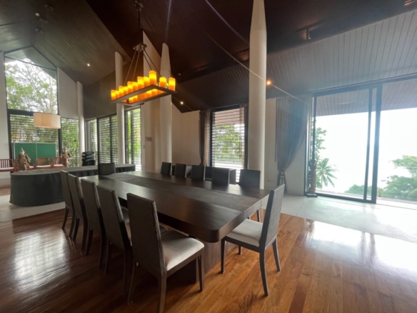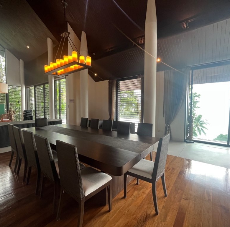 This 3-storey beachfront villa in Pa Khlok presents a rare blend of privacy, spacious living, and customization potential, located on one of Phuket’s serene and exclusive coastal areas. Set on a sprawling plot with direct access to the beach, the villa offers over 1,300 square meters of built-up area, designed to embrace the panoramic views of Phang Nga Bay. Main Features Grand Living Spaces: The villa’s ground floor hosts an open-concept living and dining area that seamlessly integrates with the outdoor spaces. High ceilings and floor-to-ceiling glass windows allow for natural light to flood in, enhancing the breathtaking views and creating a spacious, airy ambiance. Luxurious Bedrooms: The residence includes several large en-suite bedrooms, each offering private balconies or terraces with uninterrupted sea views. The master suite is especially notable, featuring a large walk-in closet, a spa-inspired bathroom, and a private lounging area that opens to the views of the bay. Entertainment and Relaxation: The villa features multiple entertainment spaces, including a private cinema room, a family room, and a library. The expansive outdoor terrace leads to an infinity pool overlooking the beach, with a shaded area perfect for al fresco dining or relaxing. Tropical Landscaping: Lush gardens surround the property, filled with tropical plants and mature trees, providing a sense of privacy and tranquility. Direct access to the sandy beach adds to the villa’s appeal, making it an ideal location for enjoying the natural beauty of the Andaman Sea. Value-Add Potential While the villa’s design offers an exceptional foundation, some areas require renovation to bring the property back to its full grandeur. Cosmetic updates to flooring, modernizing the kitchen, and refreshing the pool area could elevate the overall experience. This residence provides an opportunity for buyers to put their personal touch on a prestigious beachfront property, transforming it into a tailored luxury retreat. Overall, this villa in Cape Yamu stands as an ideal investment for those looking to create a one-of-a-kind beachfront sanctuary in one of Phuket’s most desirable locations.