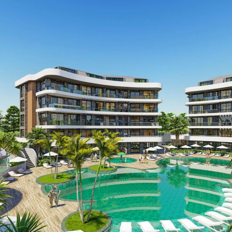 The project is spread over a vast land area of 6581 m2 and is structured into four blocks comprising 96 apartments of various layouts. Each block represents modern design developed by the leading architectural bureau of Alanya, ensuring innovative and stylish living spaces.