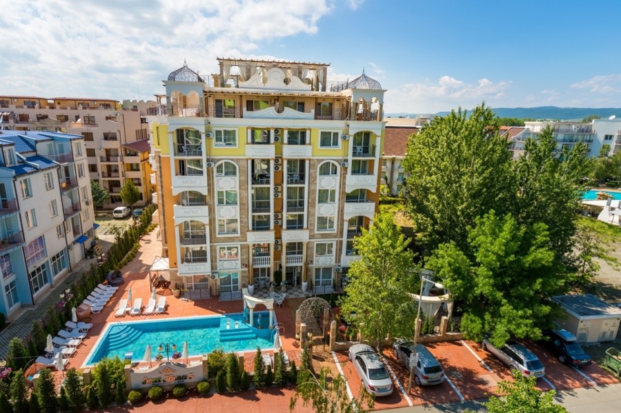 Price: 104000 EUR (4500 EUR incl.) Sweet Homes 5, Sunny beach Top floor apartment, 68 sq.m., with a large terrace and panoramic views, in Sweet Homes 5, center of Sunny beach We offer for sale a beautiful 1 bedroom apartment in the “Sweet Homes 5” complex in Sunny Beach. The complex is conveniently located near the resort center, where a variety of amenities are concentrated, including numerous shops, restaurants, bars, and entertainment options. Action Aquapark and the popular Jani Restaurant are also nearby. The beach is 500 meters away. The complex offers the following amenities: – swimming pool; – spa; – fitness; – childrens playground; – parking; – 24-hour security. This 67.8 m2 apartment is located on the seventh floor of the complex and consists of an entrance hall, a bright living room with a kitchen area, a spacious bedroom, a bathroom with a shower, and a huge terrace with stunning views of the city and mountains. The apartment is fully equipped with high-quality furniture and appliances and is ready for comfortable occupancy! Maintenance fee: 10 €/m2 per year.