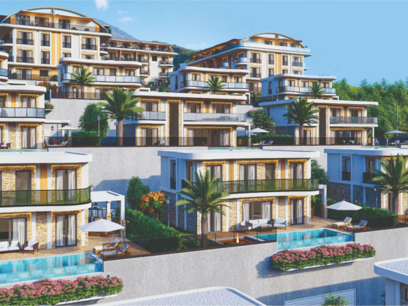 Imagine waking up to the soothing sounds of the waves and the gentle caress of the sea breeze. Nestled in the serene locale of Kargıcak, the project offers an unparalleled living experience on a sprawling 15,000 m² plot with 10,000 m² of construction area. This exclusive development features 39 duplex apartments and 15 luxurious villas, all designed to blend seamlessly with nature while providing utmost comfort and tranquility.Key Features:- Smart Home System for seamless living- Insulated metal roof with vapor and moisture barriers- Aluminum and tempered laminated glass balcony railings- Superior heat and sound insulation with Knauf Mineralplus- Granite ceramic flooring throughout- Elegant exterior stone and wood-look claddingAmenities:- Open and indoor swimming pools- Separate children’s pool and play park- State-of-the-art fitness center- Tennis and basketball courts- Turkish bath, steam room, salt room, and massage rooms- Separate saunas for men and women- Relaxation areas with jacuzzi- 44-vehicle capacity parking, both indoor and outdoor- Extensive social facilities including a 413 m² indoor and 300 m² outdoor areaWhat sets this property apart is its commitment to offering a complete lifestyle. Whether you’re enjoying a refreshing dip in the pool, unwinding in the Turkish bath, or taking a leisurely stroll through the beautifully landscaped gardens, every moment here is designed to rejuvenate your senses. The project also boasts an advanced smart home system, ensuring that your home is as efficient as it is beautiful.This is not just a home; it’s a sanctuary where luxury meets nature. Don’t miss the chance to experience the best of coastal living. Act now and make this dream property yours. Visit our website for a virtual tour and more details.Your perfect seaside retreat in Kargıcak awaits. Embrace the future of luxurious living and secure your spot in this exclusive community today.