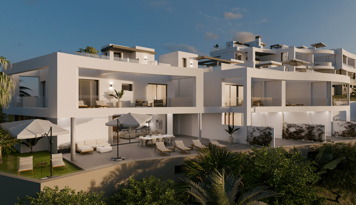 Enjoy panoramic sea views and lovely sunsets on the roof top terrace of your new home.