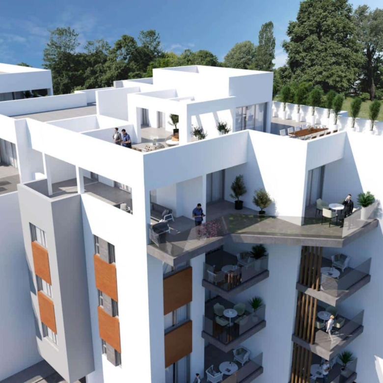 A stunning new private estate of apartment residences, offering a modern and truly luxurious environment. Surrounded by tranquil landscaped gardens, generous terracing, relaxation & entertainment areas and outdoor pool. Designed to feel part of the vibrant town centre but with the utmost privacy in mind. The complex consists of two buildings made up of 1, 2 & 3 bedroom apartments, and 3 & 4 bedroom Deluxe Penthouses offering private roof top pool and unobstructed sea views.