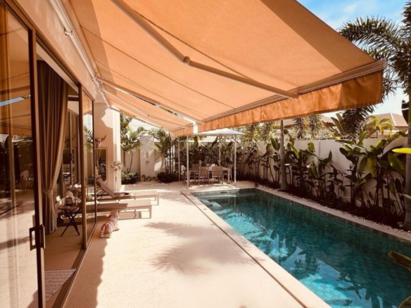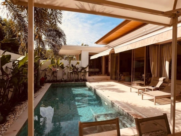 Discover the perfect blend of modern elegance and tropical serenity with this exquisite 3-bedroom, 3-bathroom villa in the prestigious Trichada Sky development, located in the heart of Cherngtalay, Phuket. Designed with comfort and sophistication in mind, this villa offers a seamless indoor-outdoor living experience, making it ideal for both a permanent residence and a lucrative investment. Nestled in a prime location, this villa is just minutes from Bang Tao Beach, Laguna Phuket, high-end restaurants, shopping centers, and international schools. Whether you’re seeking a peaceful retreat or a vibrant lifestyle, this property provides the best of both worlds. Villa Features: Spacious Living & Dining Area: A bright and airy open-plan layout with high ceilings, seamlessly connecting to the outdoor pool area. Private Swimming Pool & Sun Deck: A tranquil outdoor space surrounded by lush tropical landscaping, perfect for relaxation and entertainment. Customized Kitchen: A high-end Western-style kitchen with a kitchen island, designed for both style and functionality. Elegant Bedrooms: Three well-appointed bedrooms with en-suite bathrooms, featuring luxurious finishes and ample natural light. The master suite offers direct access to the pool. Land & Indoor Space: 303 sqm land size with 202 sqm of indoor living area, offering plenty of room for comfort and privacy. Ownership & Investment Potential: This villa is available under Leasehold ownership, making it an excellent choice for foreign buyers seeking a secure investment in Phuket’s thriving real estate market. This exceptional villa combines privacy, luxury, and convenience in one of Phuket’s most desirable locations. Don’t miss out—contact us today for more details or to schedule a viewing!