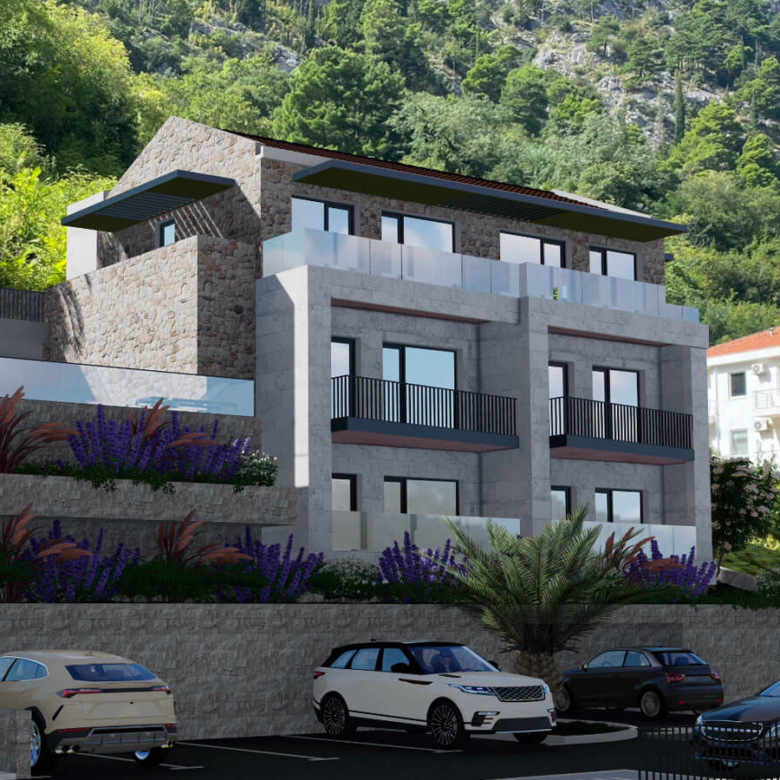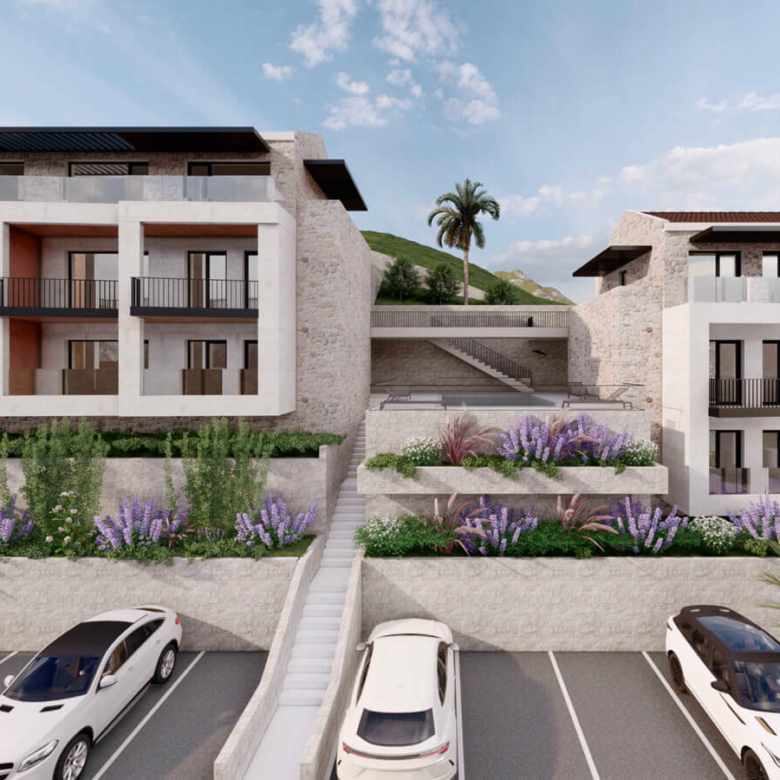 Kotor BayView Residences redefines luxury coastal living in one of the world’s most breathtaking bays – the Bay of Kotor. Ideally located in the heart of the bay, this exclusive residential complex offers uninterrupted views of the crystal-clear Adriatic Sea and the dramatic surrounding mountains.Designed to blend modern architecture with the cultural and historical richness of the region, each unit in Kotor BayView combines comfort, privacy, and style. The buildings harmoniously reflect the traditional Mediterranean landscape, featuring local stone and architectural elements reminiscent of the coastal heritage homes of Boka Bay.Property Highlights:Spacious layouts with panoramic bay viewsContemporary Mediterranean design using natural materialsCarefully designed interiors that maximize comfort and functionalityIdeal year-round living with mild climate and stunning sunsetsTwo outdoor saltwater swimming pools within the complexLandscaped green areas for relaxation and recreationPrivate parking included, garage spaces available (€20,000)Option for full interior furnishing at €600/m²Advanced security systems for peace of mindAvailable Two-Bedroom Apartments:Building A, AD, third floor – 70 m² + 20 m² terrace – SOLDBuilding C, CD2, second floor – 55 m² + 16 m² terrace – €300,594Building D, DD, second floor – 70 m² + 20 m² terrace – €377,328Prime Location:Kotor Old Town: 6.4 kmTivat Airport: 7.7 kmPorto Montenegro Marina: 11 kmPodgorica Airport: 87 kmWith its exceptional location, high-end features, and proximity to UNESCO-listed Kotor, Kotor BayView Residences is more than just a place to live – it’s a lifestyle destination. Whether you are seeking a peaceful year-round home or a high-yield investment, this development offers a perfect blend of luxury, tradition, and natural beauty.Contact us today to schedule a private tour or request more information.