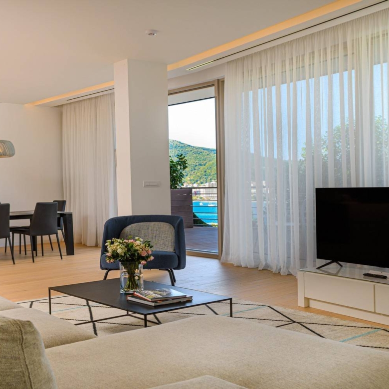 This nice two-bedroom apartment for sale is located in the heart of Montenegro’s bustling Budva riviera, in Dukley Gardens residential development. This lushly landscaped, waterfront community, set against the charming Old town of Budva, is oriented towards the sea for premium coastal views and is an elegant new paradigm for modern waterfront living.Each residence in Dukley Gardens is enhanced with generous outdoor living space and constructed to the highest international standards, featuring premier finishings, from built-in kitchens and luxury fixtures through high-end appliances and designed with extraordinary attention to quality and detail.The apartment area is 172m² and it consists of an open-plan living room, a kitchen with a dining room, two bedrooms with bathrooms, a wardrobe, and terraces. The apartment is fully furnished and ready to move in. It is equipped with modern top-designed furniture, Poliform built-in kitchen, Miele appliances, Villeroy & Boch, Dornbracht kitchen and bath fixtures, and superior finishes. The apartment is in the garden line and has a sea and a mountains view.Wired for complete security with state-of-the-art, Smart Home technology, this residence may be controlled remotely through the homeowner’s device. Each property’s lighting and climate controls, as well as, multi-media systems, home security, and surveillance systems, are easily regulated via smartphone or tablet.Dukley Gardens prizes privacy and avoids the constant flow of non-residents milling about. Offering all the premier amenities of a five-star hotel, Dukley provides exceptional personal assistance to its residents. The benefits of residency are:24-hour Concierge & SecuritySecure, Private & Valet ParkingPrivate Car Service: local transportation and airport transfersCoordination of Car, Motorcycle, and Boat rentals as well as tours & excursionsMooring for boats up to 70 meters at the 300-berth Dukley MarinaWater Shuttle Service to Budva, Oldtown, and Dukley MarinaA Fleet of Golf Carts within the complex for deliveries and transportationState-of-the-art Smart Home Security SystemsReal estate & Property insuranceChildren’s Centre, Summer Camp, Kindergarten, Child Care ServicesFitness & Wellness FacilitiesSandy, Fully Serviced, Beach FrontPrivate PoolWater Sports equipment & rentalHousekeeping & Laundry ServiceRoom Service from Dukley Gardens in-house kitchen or the Dukley Beach LoungeStylish dining and drinks VenuesWaterfront Beach ClubCatering & Event ManagementProperty & Rental Management ServicesPrivate Online account: Secure web line for communication, remote operation, and electronic document storage.For those homeowners seeking a regular return on their investment, Dukley Gardens offers a professional, year-round, property management program. Overseeing short and long, term rental arrangements, Dukley’s full-service, on-site team supervises every detail from marketing and booking through airport transfers, key handovers, security, and maintenance.Dukley Gardens uses the full advantage of its privileged location on the Zavala peninsula, in the center of Montenegrin tourism in Budva. Well positioned, this development is only 27km away from Tivat international airport and 65km from the airport in Podgorica, the capital of Montenegro. If you like this beautiful apartment and believe that it could be the right choice for your new home, feel free to contact us for more information.
