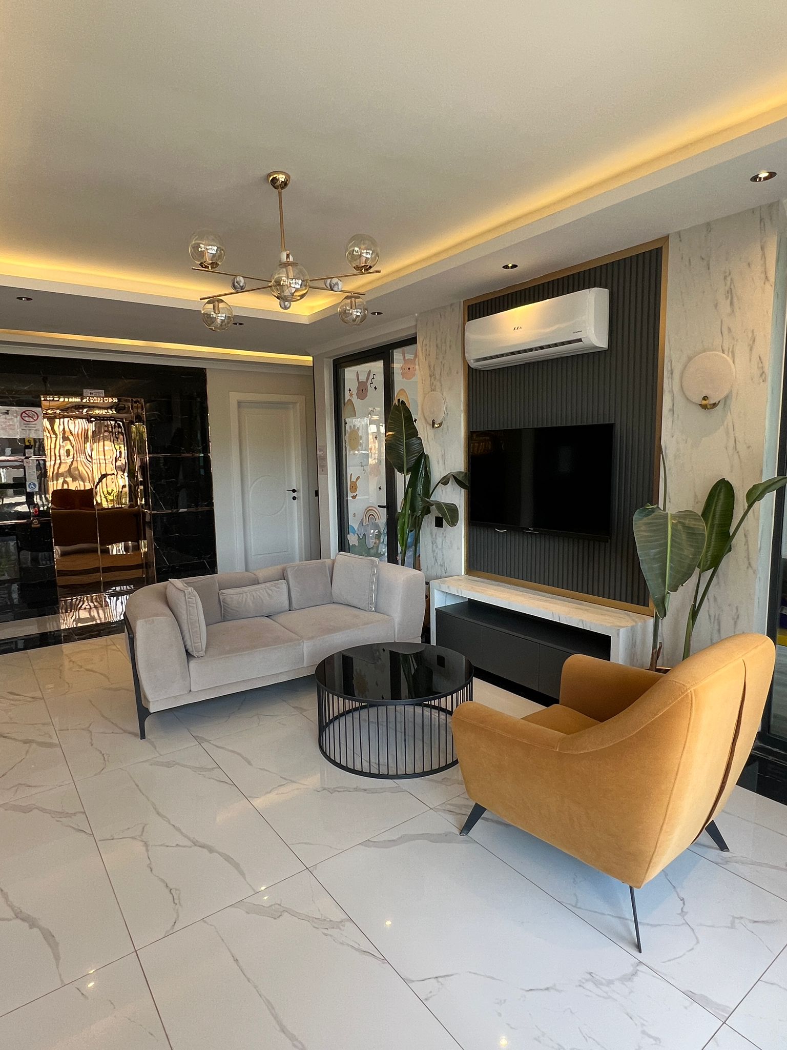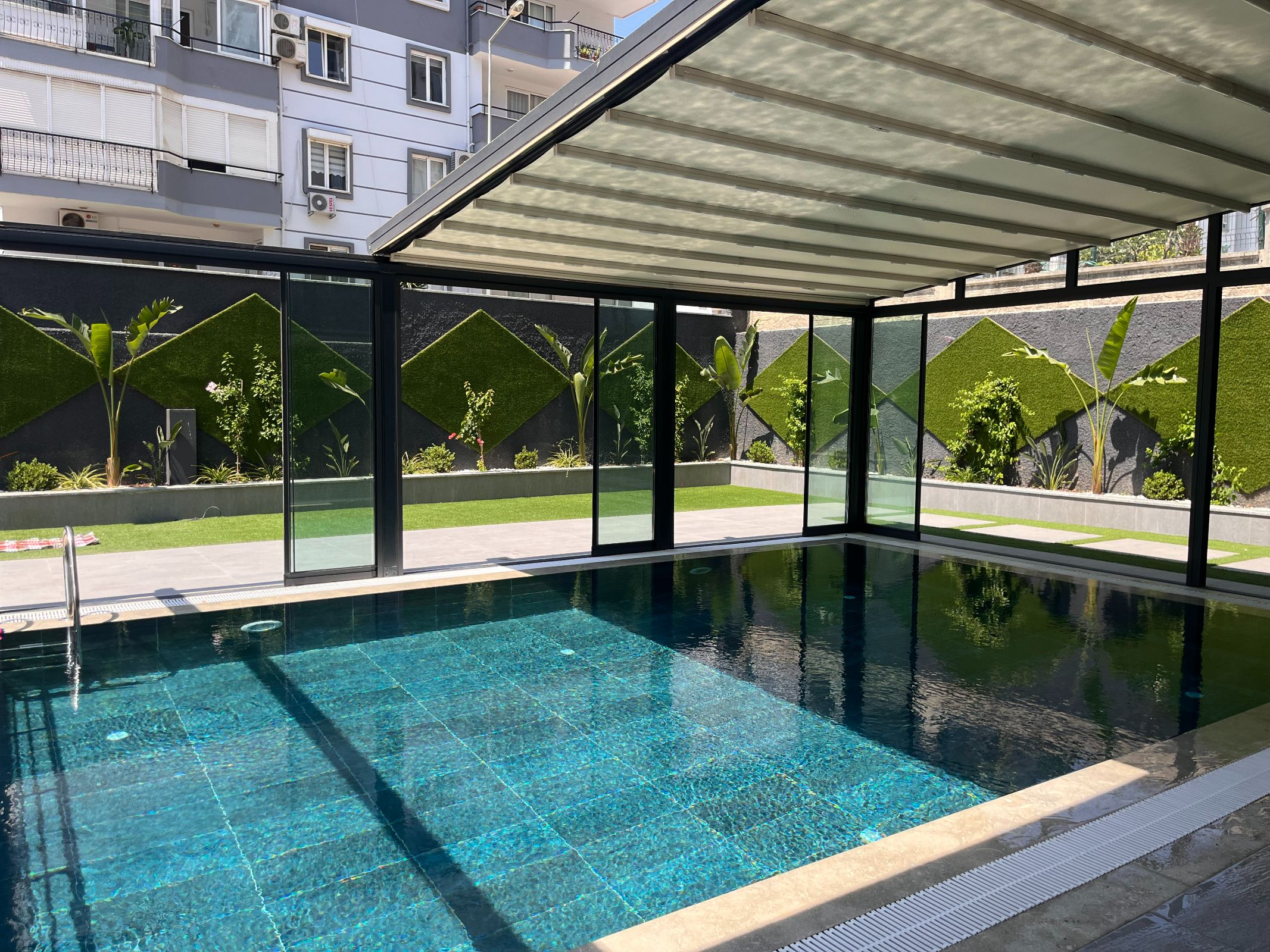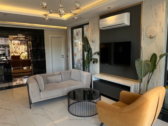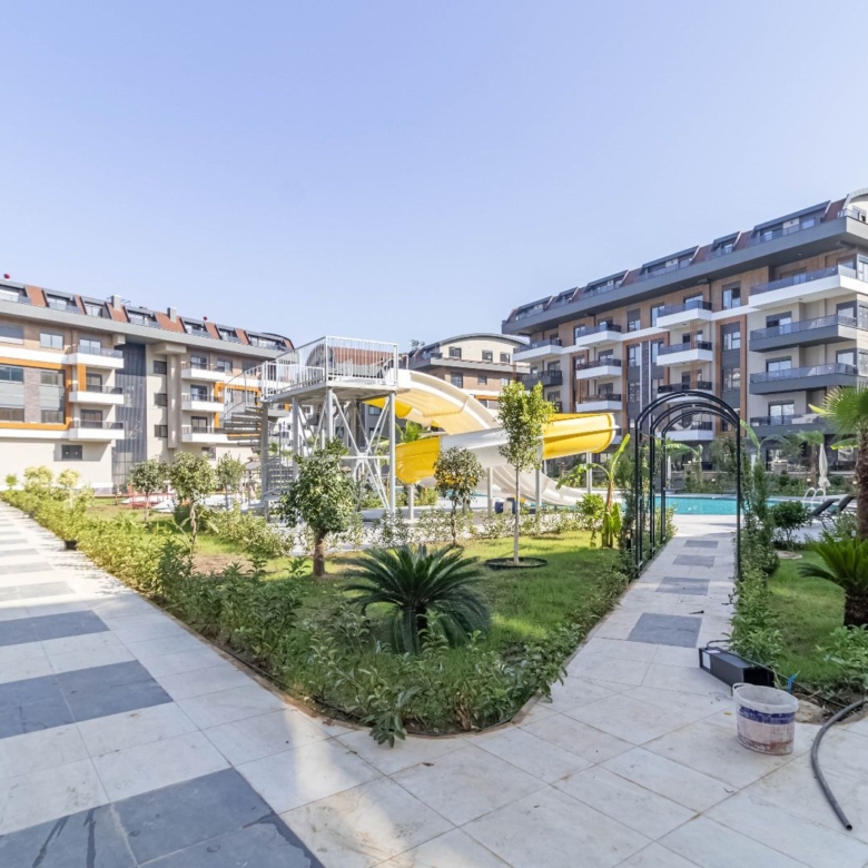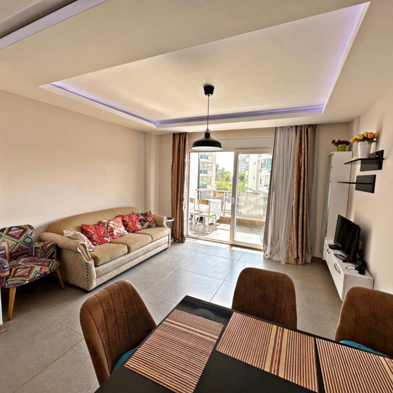 The complex consists of one 5-storey block and a private gated area, as well as a variety of infrastructure. The Mediterranean coast is 1 km away. Cafes, restaurants, a school, Metro Shopping Center, Alanyum, as well as a state hospital are all within walking distance from the house.