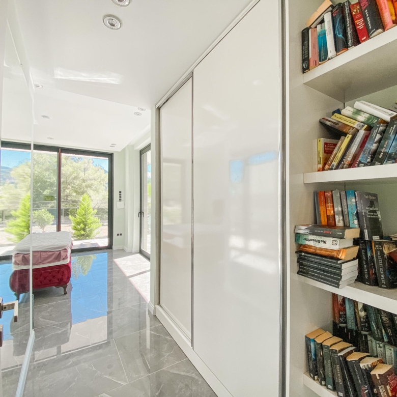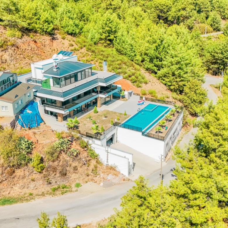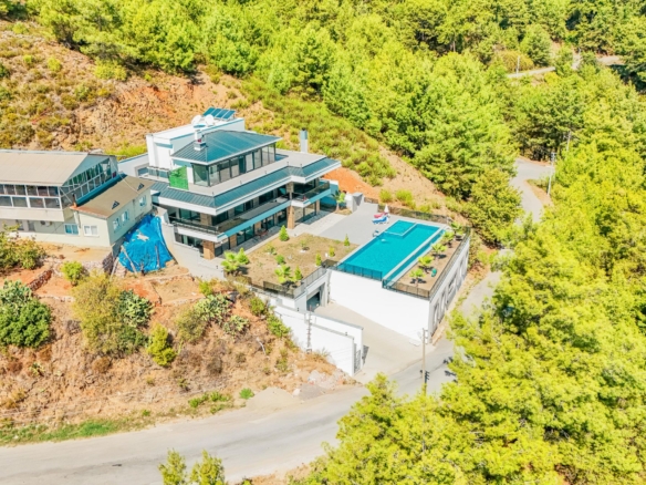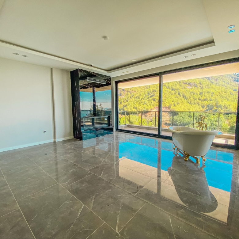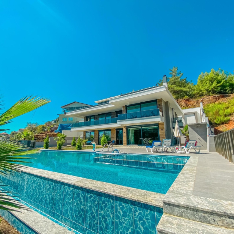 Experience uncompromising luxury and panoramic Mediterranean views in this exclusive 9+1 triplex villa in Alanya’s prestigious Tepe district.Set on a spacious 500 m² layout, this fully furnished villa offers 9 bedrooms, 8 bathrooms, and 5 jacuzzis across three floors, delivering elite comfort for large families or high-end investors. With complete sea, castle, and nature views, every moment spent here feels like a private escape.Key Features of the Property:9 bedrooms, 8 bathrooms, 5 jacuzzis2 balconies + 1 terraceFully furnished with premium materialsOnly 1–5 years old, excellent conditionTriplex layout with full smart home systemsFull underfloor heating and imported sound systemDressing room, white goods, and wine cellarTwo fireplaces and elevator for comfort and convenienceExceptional Villa Facilities Include:Private swimming poolOpen and closed car parkingWater purification systemElectric vehicle charging stationHome cinema roomTwo Turkish baths, sauna, steam roomComplete camera surveillance systemFull automatic shuttersSmart home infrastructure throughoutLocation Advantage:Located just 5 km from the sea, this villa is nestled in the hills of Alanya Tepe – a serene, elite neighborhood offering privacy, clean air, and breathtaking views, yet still within easy reach of the city center and beaches.Why This Villa?This rare gem offers the ideal balance of privacy, opulence, and functionality. Whether for high-end living, holiday use, or as a prestigious investment, this villa promises unmatched value in one of Alanya’s most exclusive areas. Contact us today to schedule a private viewing. This is not just a home — it’s your future in Mediterranean luxury.