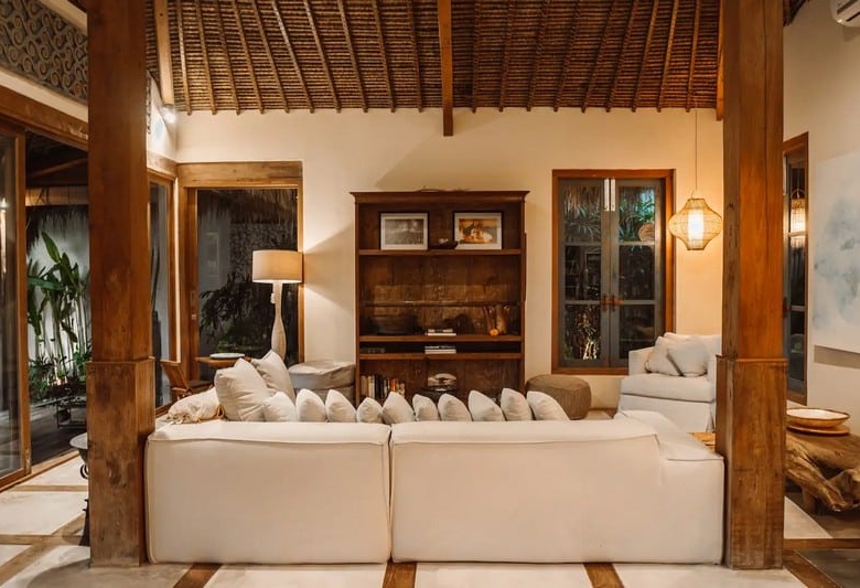 A soaring thatched roof, polished stone floors and open-plan layout blur the lines between interior comfort and Bali’s balmy air. Multiple terraces, lounging pavilions and al fresco dining areas let you choose your perfect spot.