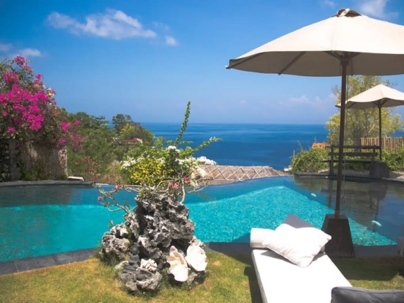 Perched dramatically on the hilltop only 150m from Bali’s legendary Uluwatu surfing location (Suluban Beach), this villa is a four-bedroom masterpiece that redefines tropical luxury. Wake to panoramic sunrises over the Indian Ocean; spend afternoons cooling off in your private infinity pool, set flush with the cliff’s edge; and toast to unforgettable sunsets with your toes in the sand below. Built in 2015 the villa also has gorgeous gardens, a long 12m x 3m swimming pool and parking for 2 cars. The property has a good 5 metre access road.