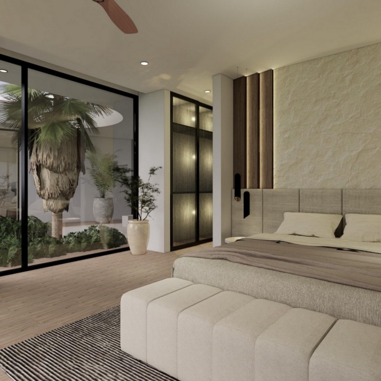 The stylishly designed FREEHOLD villa is scheduled to be completed at the end of 2024. Located in the established neighbourhood of Umalas – home of million-dollar properties, popular with expats and tourists alike. Plenty of cafes, restaurants and shops can be found in this charming area that has a friendly village feel. This villa is close to International Schools (Canggu, French, Montessori & Pro Ed) and is also minutes away from Berawa and Batu Belig beaches. Chic Seminyak and trendy Canggu are a short drive away. There is also a 10-minute shortcut that brings you conveniently to Berawa.