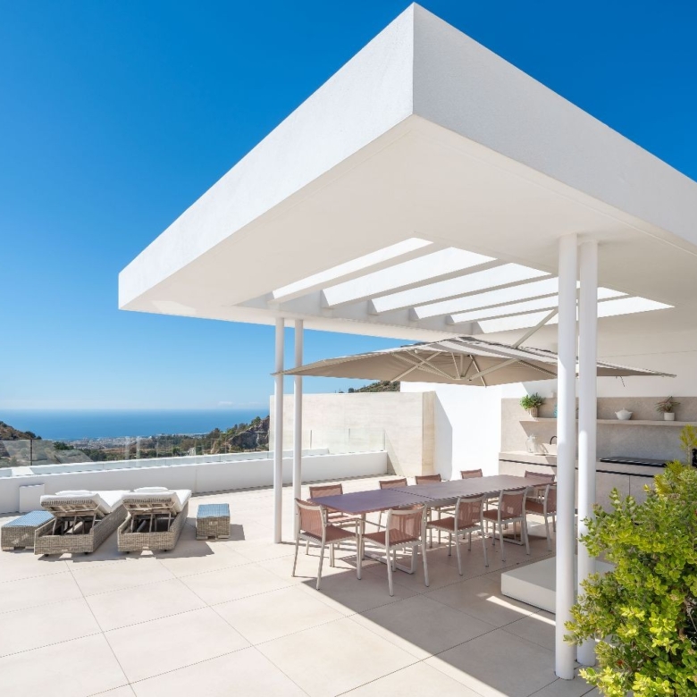 The fabulous 107-m² terraces allows residents to fully enjoy the fantastic sea and mountain views, and the Costa del Sol climate, considered the best in continental Europe. The luxury property features 3 serene, good size bedrooms (2 bedroom suites have their own bathrooms), 3 modern bathrooms and 2 guest toilets. It also benefits from 3 indoor parking space and a storage room. However, a feather in the cap for this apartment is an amazing roof top solarium of 147 m² with an outdoor kitchen, barbecue, al fresco dining and sunbathing areas, and a Jacuzzi. It boasts the amazing 180 degree panoramic views over the coast, Mediterranean Sea and idyllic surroundings.