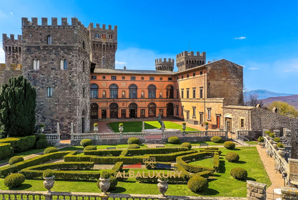 Immersed in the enchanting hills of Lazio, in the picturesque medieval village of Torre Alfina, there is an imposing castle for sale, an extraordinary testimony of history, luxury, and beauty. With its 5000 square meters of sumptuous interiors spread over five levels and a 1000 square meter Renaissance garden, this historic fortress is an architectural and landscape gem that represents a unique opportunity for those seeking an exclusive residence or an investment in the hospitality sector.^^The village of Torre Alfina, in the municipality of Acquapendente, is a place that seems suspended in time, with its characteristic cobbled streets and ancient stone houses. Located on the borders between Lazio, Umbria, and Tuscany, it offers spectacular views of the surrounding countryside, a paradise for nature lovers, trekking enthusiasts, and history buffs. The surroundings of the castle are an oasis of peace, with gentle hills, forests, rivers, and historic trails inviting discovery of the territory and its rich cultural heritage.^^The castle, originally built in the 8th century by the Monaldeschi della Cervara family, has undergone numerous transformations over the centuries. In the Renaissance period, under the guidance of Sforza Monaldeschi, it underwent its first architectural reinterpretation, but the biggest transformation occurred in 1880 when Count Edoardo Cahen d’Anvers commissioned architect Giuseppe Partini and gardeners Henri and Achille Duchu00eane to restore it in a romantic medieval style, enriching it with decorative elements and precious gardens. This refurbishment gave the structure an unparalleled charm that blends history, art, and nature in a unique setting.^^The property, with its five medieval towers, spans five levels and includes 35 rooms, distributed among environments rich in historical and artistic details. On the ground floor, a magnificent frescoed gallery with inlaid wooden ceilings and marble statues welcomes visitors, with large arched windows offering panoramic views of the village and countryside. Also on this level are three kitchens, large pantry rooms, and five bedrooms. The noble floor, on the upper level, houses a vast scenic gallery, over ten rooms, a dining room, reception halls, and a library with a wooden floor. A private bathroom with a sauna adds a touch of luxury. The second floor is dedicated to the sleeping area, with numerous bedrooms and rooms used as attics, warehouses, and storage rooms.^^The towers, the pride of the property, host panoramic rooms offering breathtaking views of the surrounding landscapes. The interiors, embellished with marble floors, frescoes, decorated ceilings, and antique furnishings, tell the long history of the castle, while a sumptuous marble staircase connects the different levels.^^Outside, the 1000 square meter Renaissance garden, designed with geometric flower beds and perfectly manicured hedges, creates an atmosphere of tranquility and beauty. A central fountain with water features adds an element of elegance, while ornamental courtyards and battlement towers complete the external charm of the property. The outdoor spaces are perfect for private events, guaranteeing maximum privacy and an exclusive atmosphere.^^Buying this castle means not only owning an architectural masterpiece but also immersing oneself in centuries-old history, surrounded by the pristine beauty of the Lazio countryside. The property represents a rare combination of luxury, history, and privacy, making it ideal both as a private residence and as a business opportunity in the luxury tourism sector. The proximity to the borders of Umbria and Tuscany, combined with the authenticity of the village of Torre Alfina, makes this fortress an unparalleled experience, where art, nature, and history coexist in harmony.,
