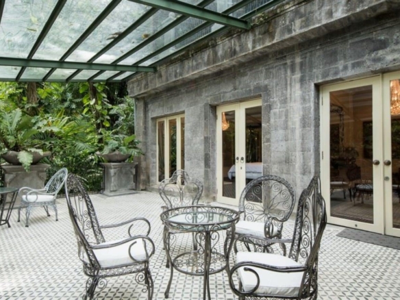 The villa has four spacious bedrooms, all with private ensuites and built-in wardrobes and another room that is being used as an office that can easily be converted. There is the King Suite with its mirror panelled walls, chandeliers, private massage room and bathroom with a Victorian tub, plus another three generously proportioned bedrooms each with centuries-old polished ironwood floors. A lovely new addition is a luxury one bedroom riverside self-contained apartment. Romeo-Juliet balconies and wrought iron fencing look out onto multiple vistas.