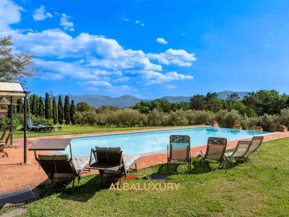 Located in a prime position just 23 km from the famous Duomo of Pisa and the Leaning Tower, this villa is a prestigious residence nestled in the green Tuscan countryside, just 4 km from the historic center of Lucca. This historic villa, perfect for those looking to live in a peaceful oasis without sacrificing proximity to major tourist attractions, offers a unique combination of luxury, comfort, and breathtaking views.^Main Features:^Generous Dimensions and Elegant Spaces: The villa is spread over two levels, totaling approximately 450 sqm. On the ground floor, there is a large fully-equipped kitchen, a spacious living room, a study, and a sitting room. On the first floor, there are 5 large double bedrooms, 2 of which have en-suite bathrooms, plus an additional 3 bathrooms.^Additional Spaces: The property also includes a basement and an attic floor, as well as an independent annex of approximately 440 sqm, perfect for various uses.^Infinity Pool and Wellness: The large garden of 10,000 sqm features a stunning infinity pool, complete with a sauna and a hot tub, providing moments of pure relaxation.^Private Land: The property extends over 3.3 hectares of land, including olive groves and vineyards, ideal for nature lovers and those interested in producing high-quality oil or wine.^Strategic Location: Just 27 km from Pisa International Airport, itu2019s easily accessible yet set in a peaceful hillside area. Piazza dei Miracoli and the Leaning Tower of Pisa are 23 km away, allowing you to enjoy Tuscanyu2019s beauty with ease.^Unique Opportunity: This prestigious property is perfect as a luxury private residence or a high-end hospitality facility, thanks to its location, dimensions, and countless amenities. Contact us to learn more and arrange a visit.,