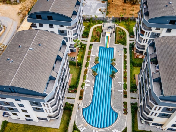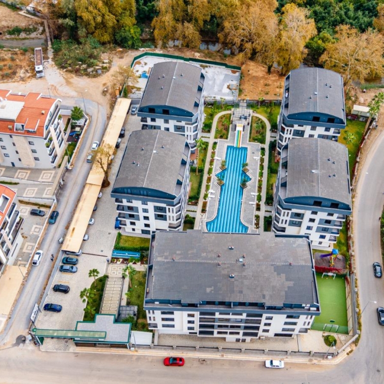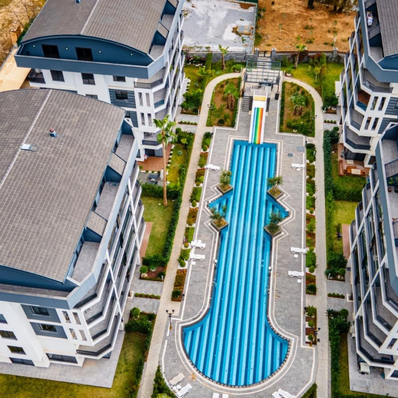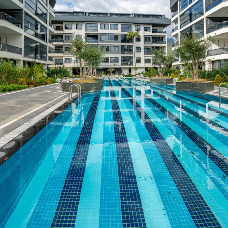 The complex offers outstanding features: a 300 m² pool, water slide, heated jacuzzi, massage rooms, Turkish bath, sauna, fitness room, cinema, kids’ playroom, and bar. Sports lovers will enjoy tennis, basketball, volleyball courts, and a gym. There is 24/7 security, cameras, a generator, and parking for 62 cars. ThisAlanya Oba flat saleis priced for quick action—ideal for investment or vacation living.