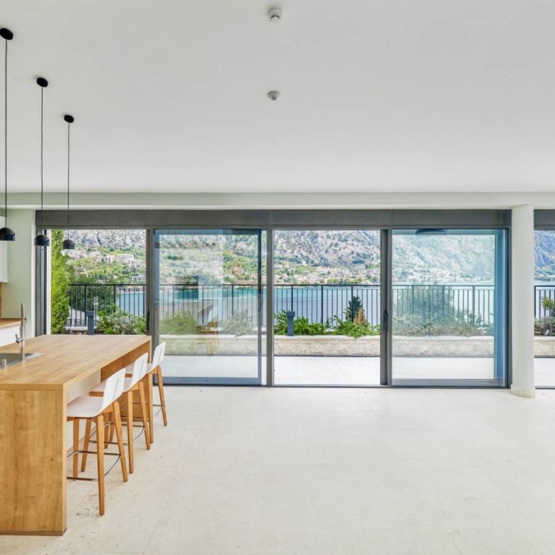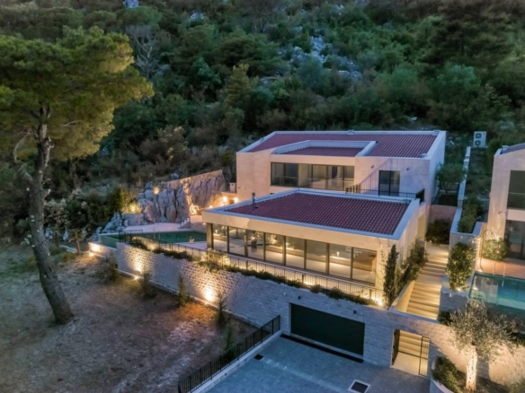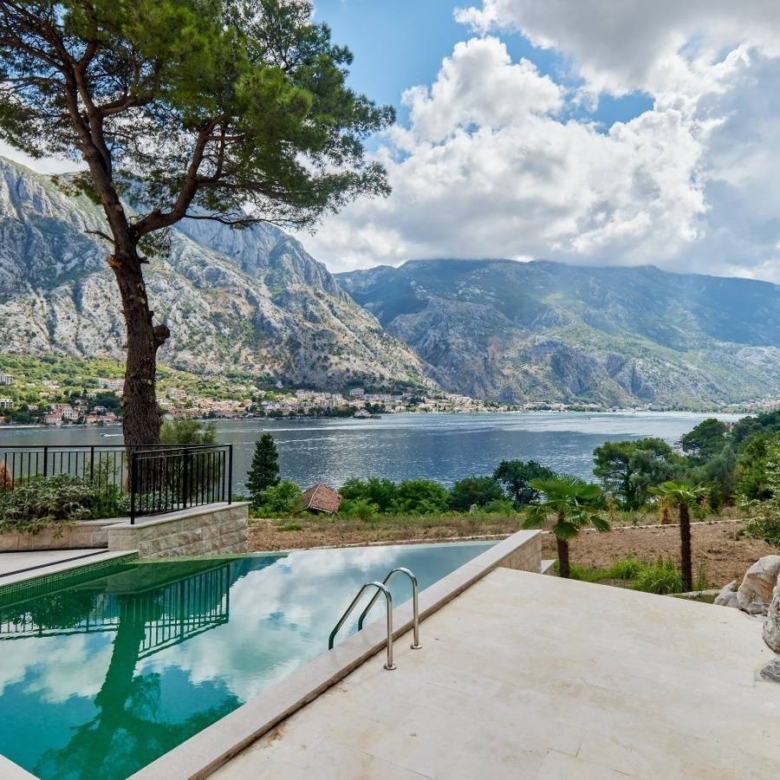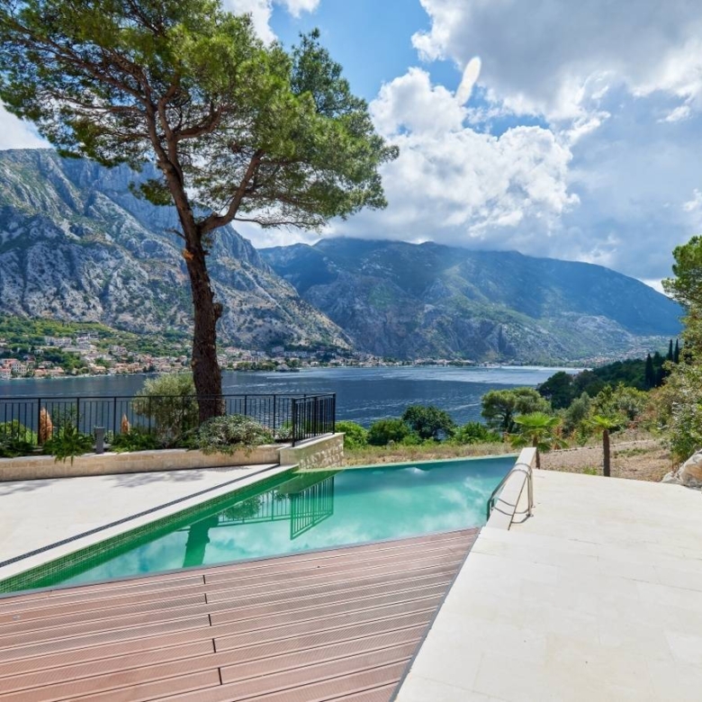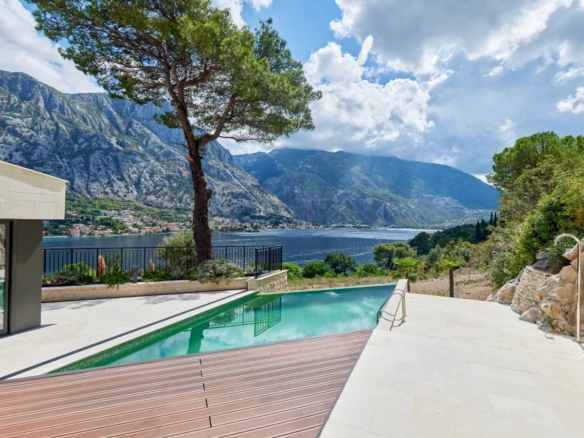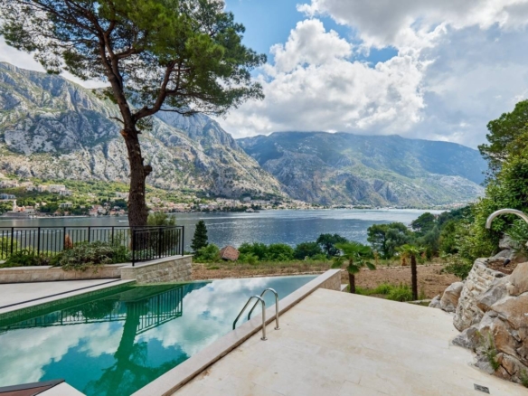 If you want to enjoy a great ambiance, with a breathtaking view, this exceptional Mediterranean villa is the right choice for you. Situated in a quiet, picturesque corner of UNESCO-protected Kotor Bay, this secluded villa provides the perfect sanctuary, with commanding sea views surrounded by mountains and sprawling Mediterranean gardens. The villa design is sleek, with clean lines and open, spacious interiors. Mediterranean limestone walls and characteristic sloping terracotta roof tiles float above floor-to-ceiling glass windows to maximize natural light and unobstructed, dramatic views across the Bay towards Kotor Old Town and the mountains beyond.On the ground floor, there is a large double garage, gym, laundry/utility, storage, and technical rooms (Central Control and AirCon, CCTV, Video Intercom, Fire & Security, WIFI).The first floor consists of a glass-enclosed entrance reception at the center, directly opening courtyard decking and a pool beyond. To the left are high-ceiling living space, wood-burning stove, and kitchen areas with panoramic views of the bay and mountains. To the right, large master bedroom and bath ensuite opening to decking and pool, additional double bedroom/flex-use, bathroom and sauna, guest WC.On the second floor, there are 3 large double bedrooms with ensuite (and walkthrough), outside terrace with a magnificent sea view.Premium kitchen (Nobilia/Bosch) and bathroom fittings (V&B, Catalano, HansG), ceramics, and flooring (Florim, Porcelanosa, and natural stone) are used throughout. Living areas and bathrooms with underfloor heating recessed AirCon and ventilation in ceilings.In front of the villa, there is the infinity pool and shower, decking, limestone paving terraces, and BBQ, with substantial wild garden areas.Villa Aquila offers the dream combination of peaceful seclusion, whilst lying within easy reach of the local waterfront village marina and a short drive to the historic walled city of Kotor, the luxury yachting haven of Porto Montenegro and Tivat International Airport.