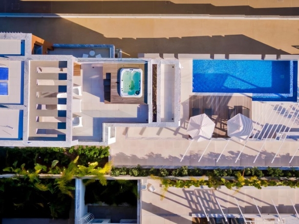 A stunning luxury villa in a prestigious area of Ayia Napa, part of an exclusive new development. Carefully positioned to offer privacy and tranquility, the villa is nestled in a prime location—secluded enough for peaceful living, yet close to all the conveniences of the vibrant resort town. Designed for a sophisticated homeowner, this elegant residence blends modern aesthetics with high-quality materials, creating a refined and durable living space. The ground floor features a spacious living area, a stylish kitchen, and a terrace with a private pool, perfect for relaxation and entertaining. The first floor hosts two ensuite bedrooms, while the second floor boasts a rooftop terrace with a jacuzzi and a third ensuite bedroom, offering breathtaking views of the surrounding landscapes. With velvety beaches on one side and serene fields on the other, this villa is an exceptional opportunity for those seeking the perfect blend of luxury, privacy, and coastal living in one of Cyprus’ most sought-after locations.