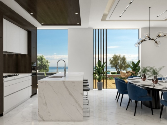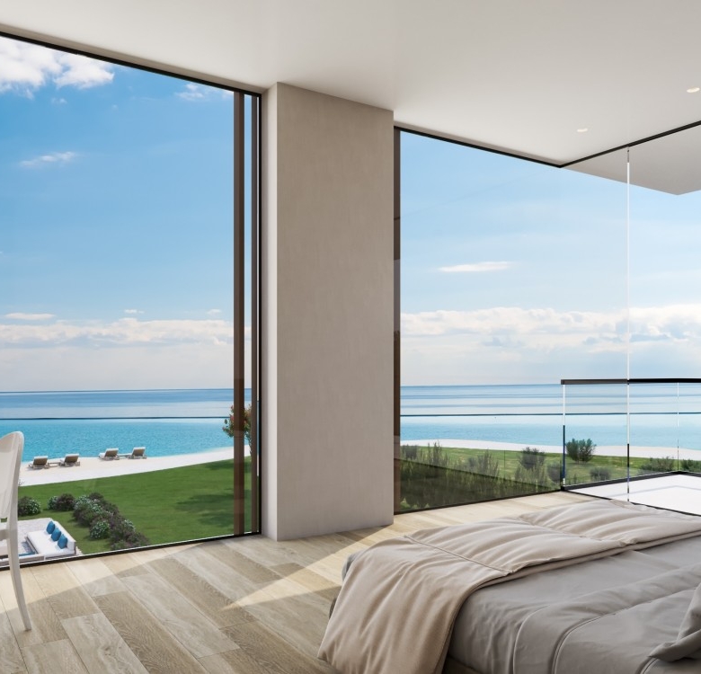 A unique development of 4 ultra-luxury villas, located on the sandy beach at the east side of Agia Napa Marina. Each villa will have 5 bedrooms and 5 bathrooms, with plots starting from 562 sq. m to 1897 sq. m. In addition, there is a private roof garden on each villa, with direct sea views. This villa has a roof garden of 70 square meters.