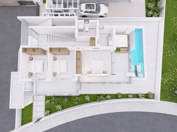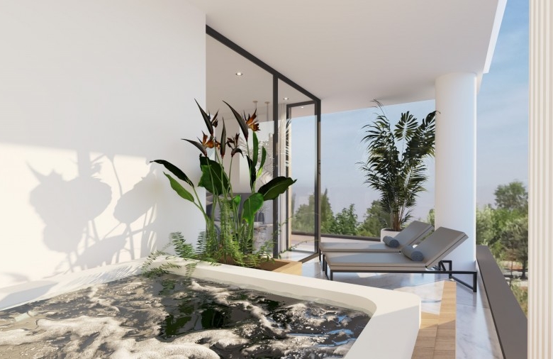 These residencies were designed to meet every need of yours and at the same time use the space they are provided in the most modern and sophisticated way. It all starts from the outside, where the neutral colors chosen, blend with the environment and bring comfort to the eye. Their structure is beyond unique, using all these exclusive designs and materials to collect all the possible energy from the sunlight and not only. You will have all the magic view just for yourself. This villa has a roof garden of 52 square meters.