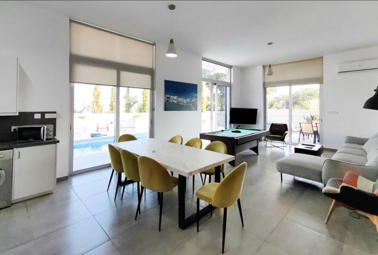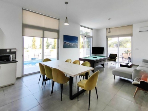 Luxury 5-bedroom detached villa, nestled in the charming locale of Protaras, Famagusta. Embrace the modern architectural expression, seamlessly blending style, practicality, and comfort. Accessible via a private road, offering exclusivity and tranquility. Enjoy the breathtaking Mediterranean Sea views from the private infinity-edged swimming pool. Designed on a modular concept, creating a master suite for ultimate luxury. Unique internal garden provides unmatched views and an oasis of tranquility. Ground-level bedroom functions as an independent standalone unit, ensuring privacy and versatility.