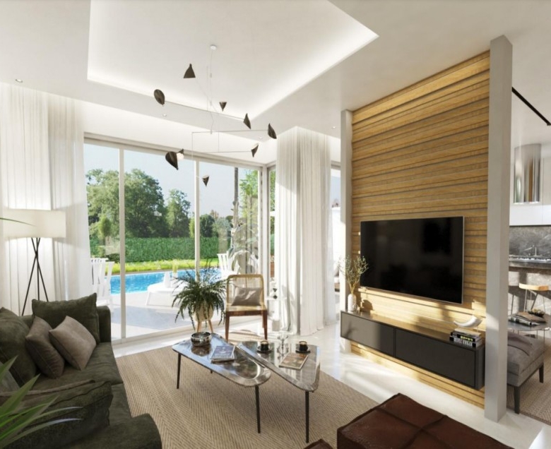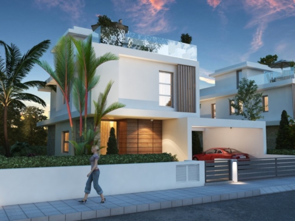 The Villas are located within the heart of the Larnaca Tourist Area, just 300 meters away from the best Sandy Beaches of Larnaca.The area is known as the most prestigious area for luxury Villas by the sea and features a strip of hotels, restaurants and other entertaining facilities all by the beach. The Golden Bay Hotel, Lordos Hotel and Sandy Beach Hotel with all the amenities accompanying the hotels are just a mere stone’s throw away.Designed with a contemporary unique style, luxury and elegant detail, Golden Bay Deluxe Villas offers beautiful and spacious Class A and B+ 3 and 4 bedroom Luxury villas. The Villas are characterized by their commodious flexible floor plans that create a contemporary life which you have always dreamed of. Living spaces are light-hearted, welcoming and comfortable and are appointed with the very highest quality finishes, sourced from our exclusive suppliers. All fittings and finishes have been meticulously chosen to enhance and reflect the caliber of this property.The villas harmonious blend of outstanding architecture sets a new standard of living for its occupants. Each villa is set over 3 spacious levels and has spacious garden area and swimming pool with a pool bar for the ultimate relaxation and outdoor dining and family enjoyment.This magnificent blend of thorough architecture and superior build make the villas an ideal residence for those seeking the ultimate in luxury. This villa has a roof garden of 48 square meters. Delivery-April 2025