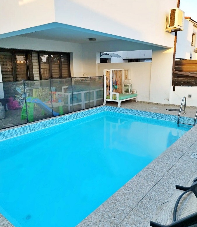 This stylish 3-bedroom semi-detached home in Livadia offers modern living with a private pool and spacious outdoor areas. The open-plan living and dining area seamlessly connects to a wide-open kitchen with a large island, creating a perfect space for entertaining. Upstairs, the property features three generously sized bedrooms with ample wardrobe space and a large family bathroom. The private pool is securely fenced for added safety, complemented by a BBQ area and plenty of space for outdoor relaxation. With covered and uncovered parking and a prime location close to all amenities and the city center, this home is an excellent choice for families or investors looking for a comfortable and stylish residence in a sought-after area.