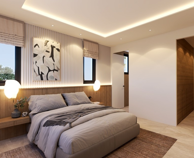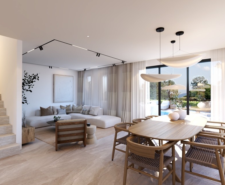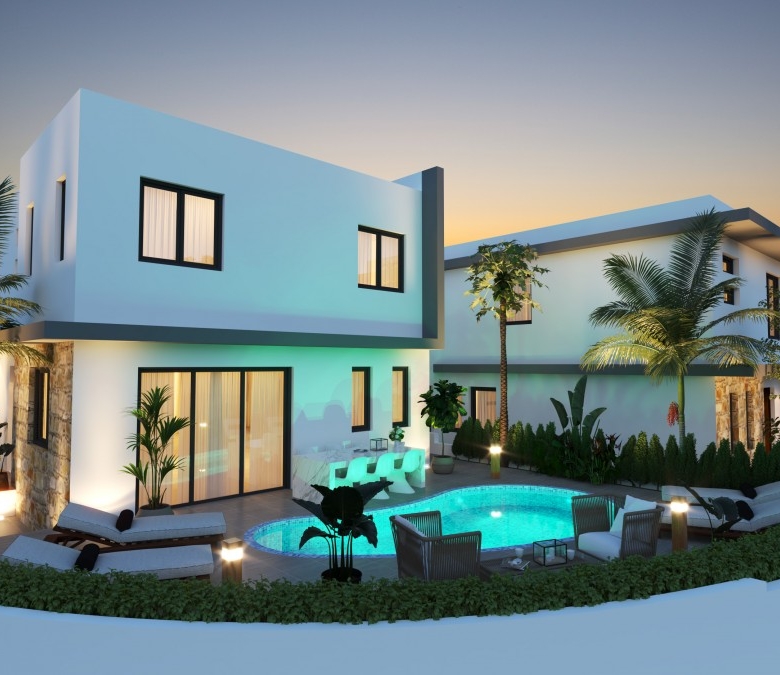 Step into modern comfort with these beautifully designed two-storey villas, each offering a spacious open-plan layout that seamlessly connects the kitchen, dining, and living areas—perfect for both everyday living and entertaining. The ground floor also features a guest WC, a bedroom/office space, and direct access to a covered garage and private storage area. Upstairs, you’ll find three well-proportioned bedrooms, including a luxurious master suite with en-suite bathroom, alongside a shared family bathroom. Large windows and sliding doors invite natural light throughout, while the covered veranda and private outdoor areas offer ideal spaces for relaxation. With a blend of smart design, functional flow, and quality finishes, these homes deliver both style and practicality in every corner.Optional swimming pool for an additional €25,000 + VATDelivery 12 months