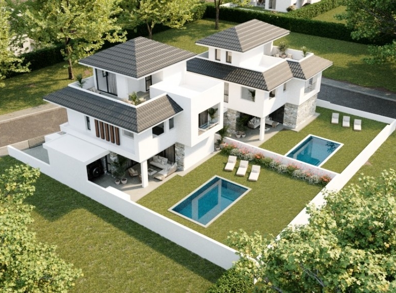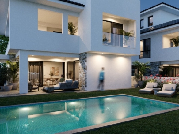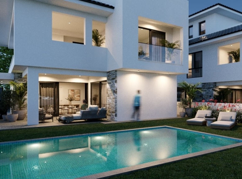 Not more than 5 minutes drive from Larnaca town center, these residences are located in an established residential are, which has been identified for high growth potential and future development gains. Great luxury options are featured comprising open plan living areas which can be modified to suit the purchases needs, kitchen/dining area, guest toilet, master bedroom with en-suite and main bathroom. The project uses a unique combination of glass, stone and timber to appeal to the new home buyer. This villa has a roof garden of 48 square meters.