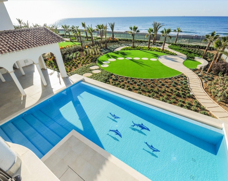 An exclusive collection of beachfront villas within a peaceful gated community offering 16 unique villas for private ownership. The development is located on the east coast of Cyprus, conveniently situated only 10 minutes from the islands main International Airport and 15 minutes from Larnaka city centre offering culture, entertainment, restaurants and shopping. These beautiful villas which boast an exemplary finish and presented to the highest possible standard, are situated in a private location maintaining a serene and quite ambience. Careful planning provides extremely comfortable accommodation offering a wealth of living space and ample entertaining areas for your family and honored guests.The villas boast extremely spacious 5, 6 and 7 bedroom family homes, offering extensive living areas from 676m² to 1703m². Each villa is well laid out for personal living and entertainment, but perhaps the best thing of all are their large landscaped gardens with magnificent private swimming pools which allow you to enjoy outdoor activities in total seclusion. The villas are built on individual plots, ranging from 1,082m² to 3,492m², ensuring the utmost in space and harmony. A rare opportunity to secure some of Larnaka’s remaining prime real estate in an exceptional development located in Pervolia. Luxury at its best.